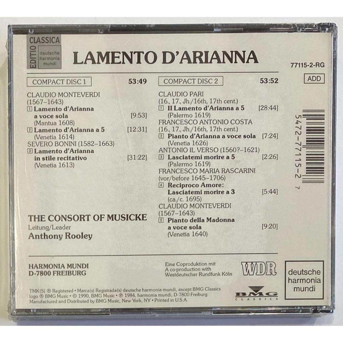 Anthony Rooley - Lamento D'Arianna / The Consort Of Musique CD. New