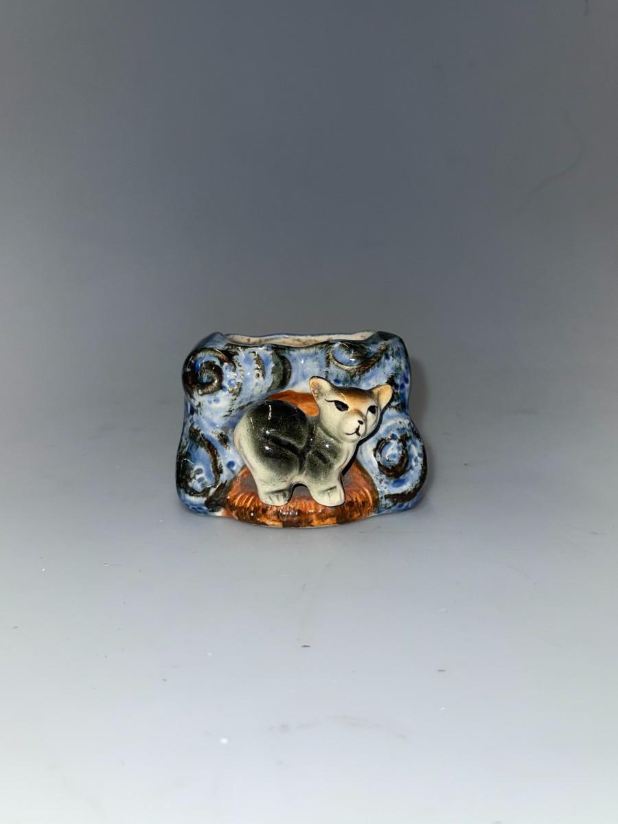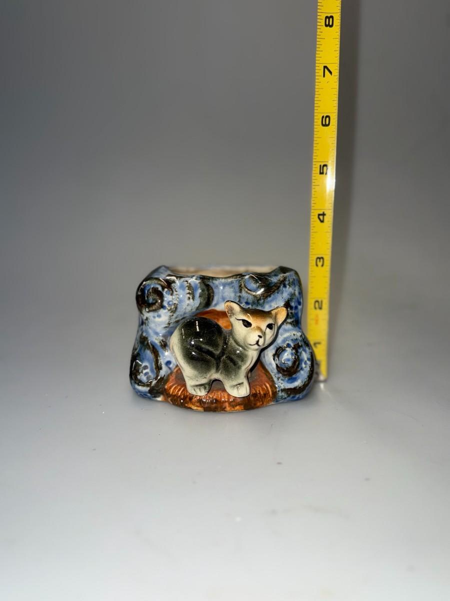 VINTAGE FOX AND TREE STUMP VASE PLANTER MID CENTURY MARKED JAPAN 3.5" TALL