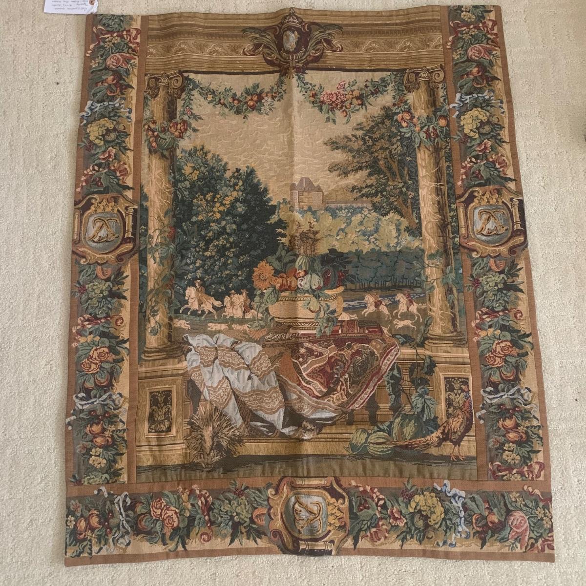 This lovely 36”x46” tapestry by Corona Decor Co. Design is in great condition. It has a pocket to hang on a rod in the back and the lining in the back is also in fine condition. Lovely earth tones throughout. Shipping available.