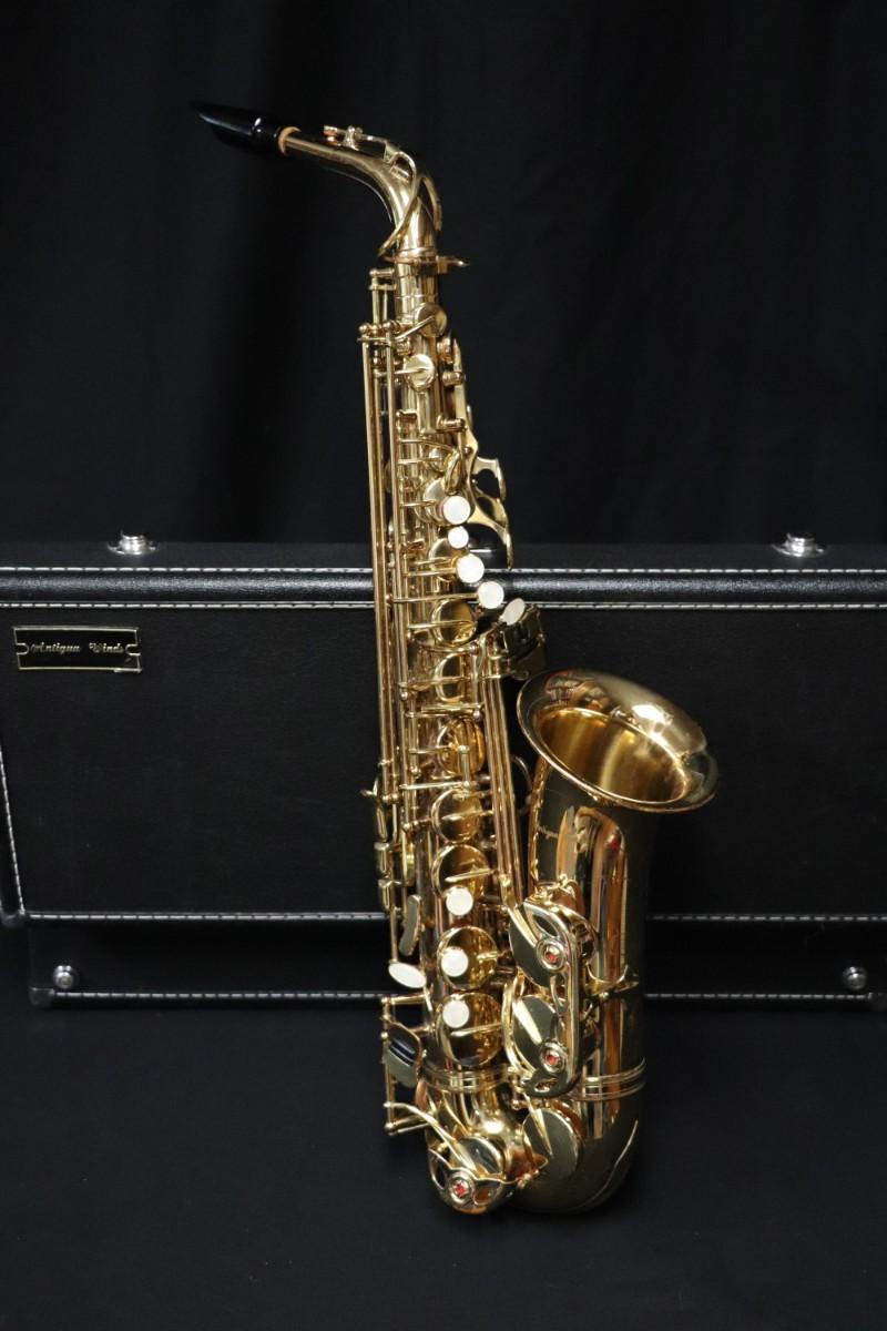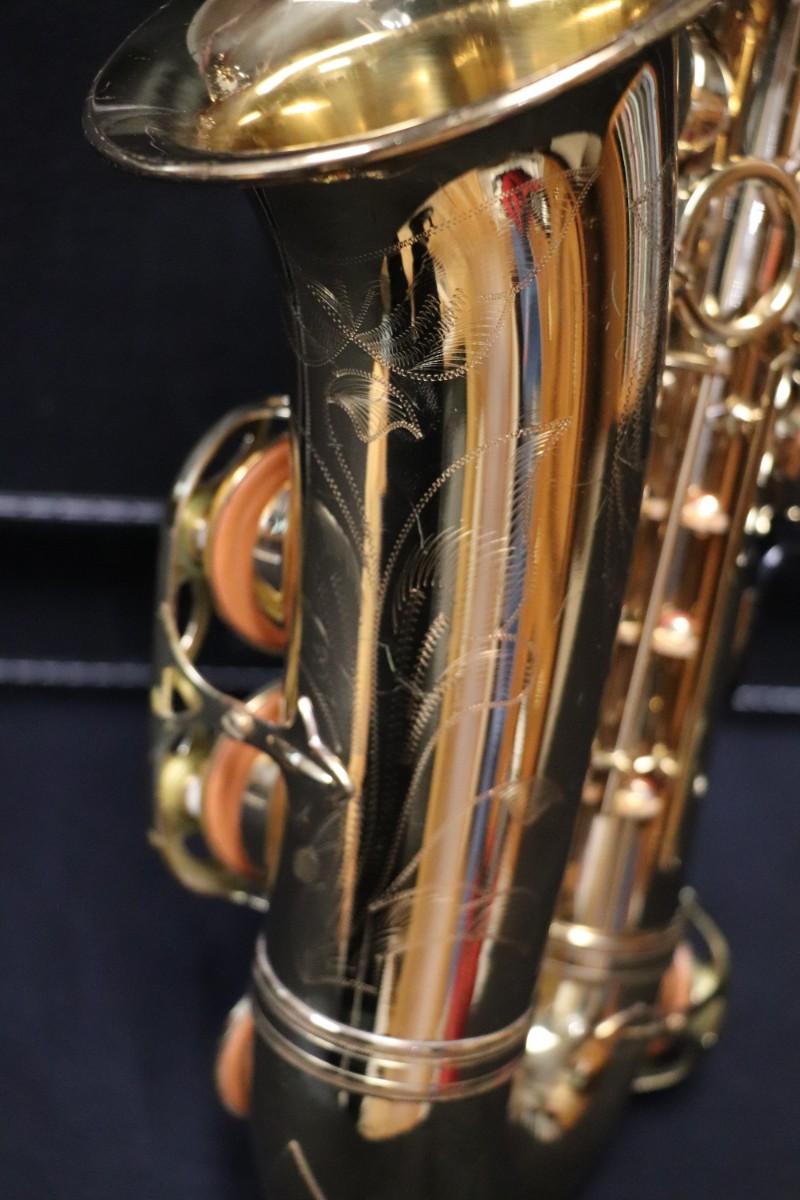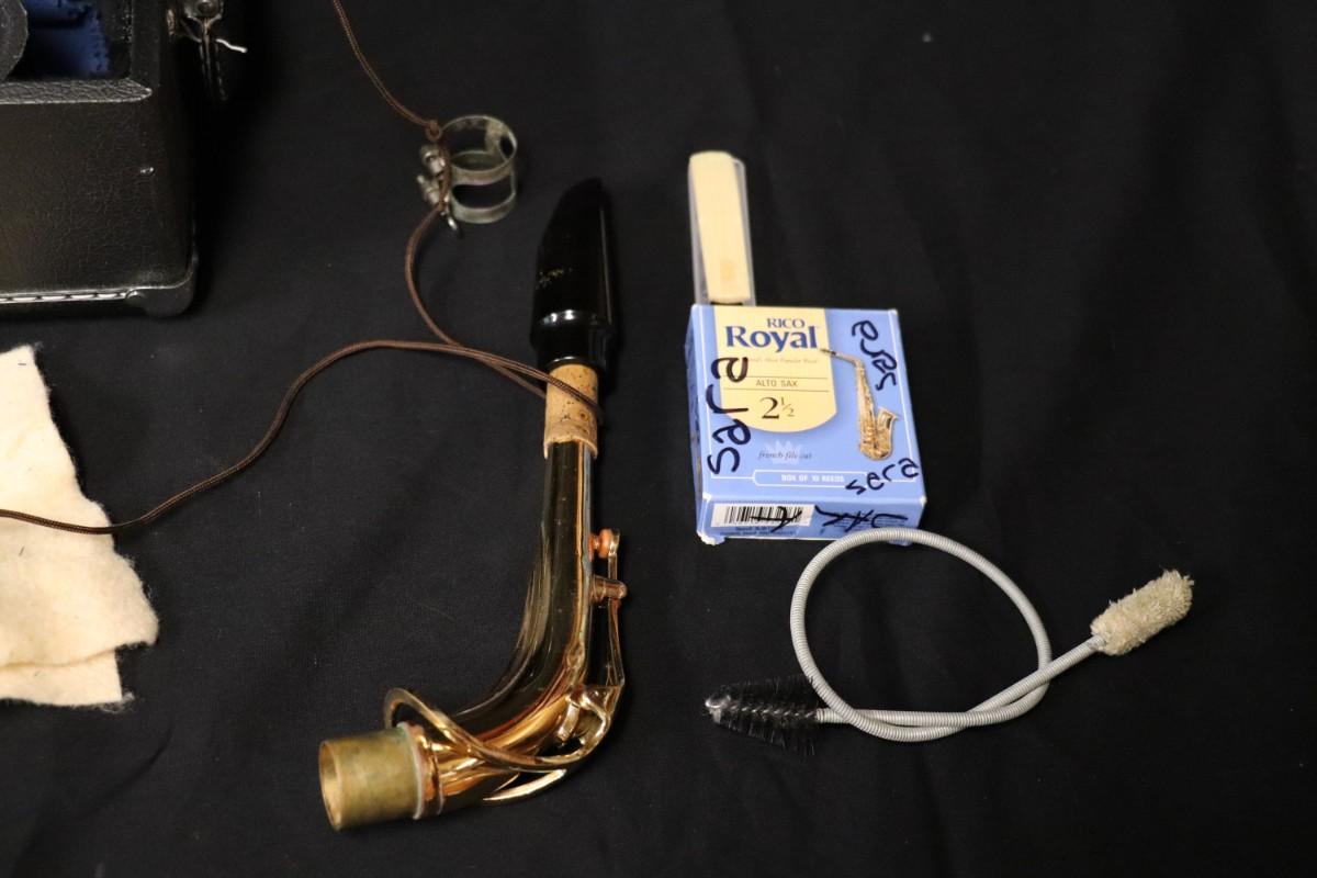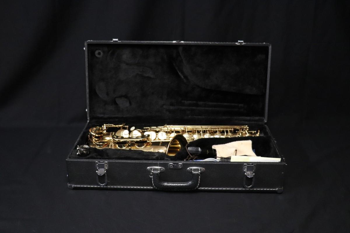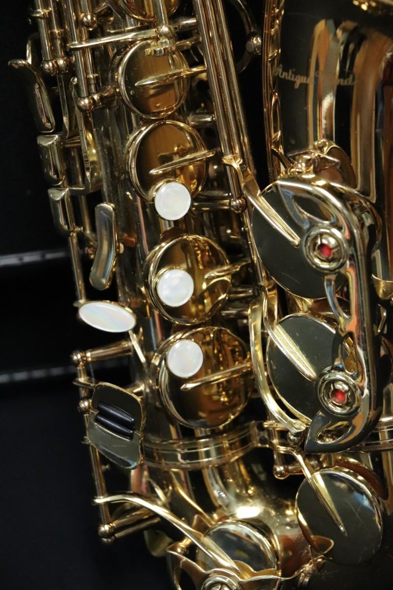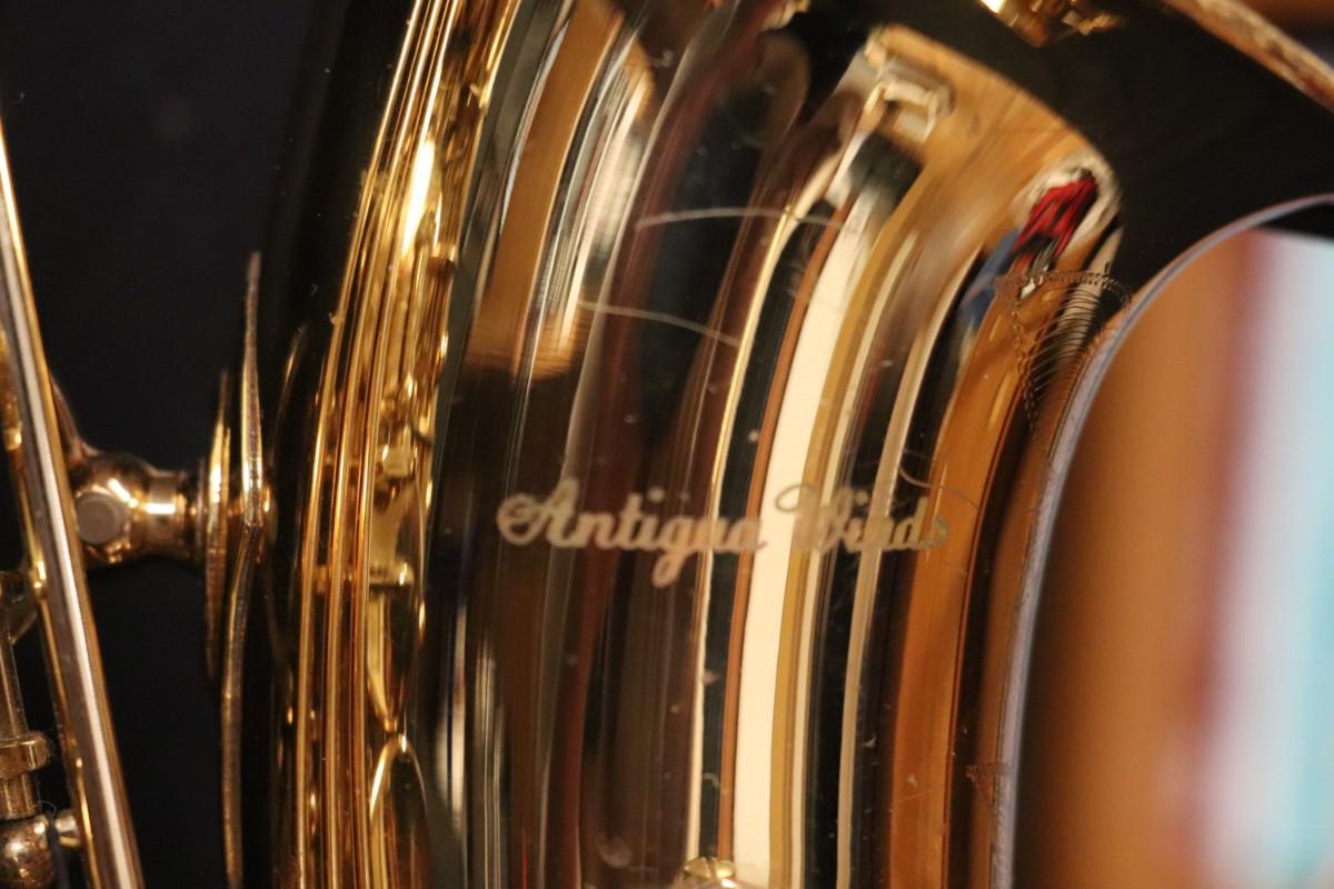 Gorgeous Antigua Winds Saxophone with case. Beautiful details- mother of pearl keys and engraved designs. Condition as shown.