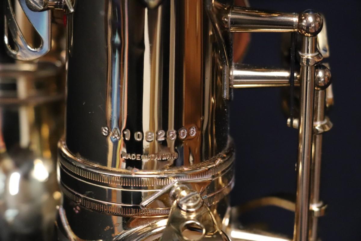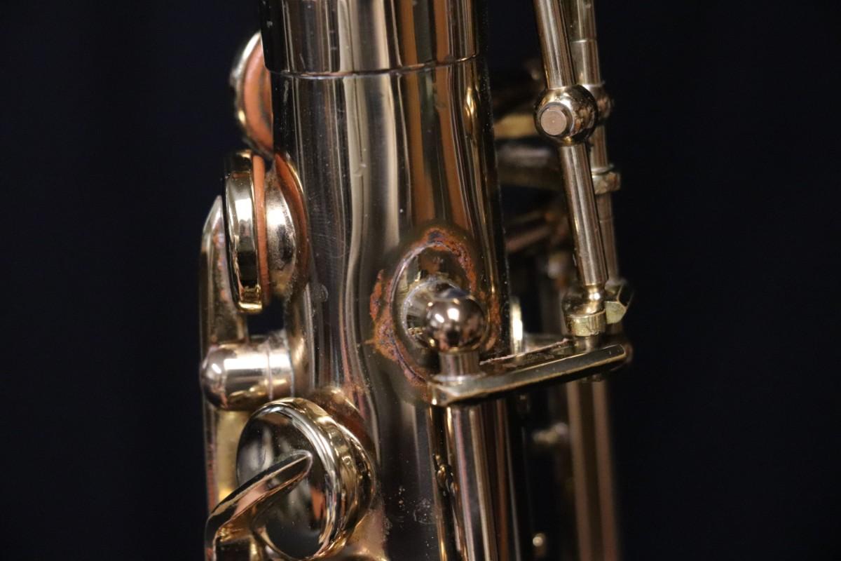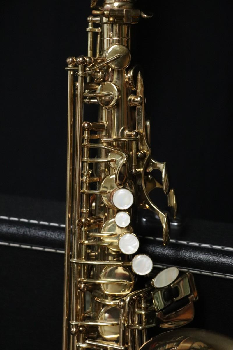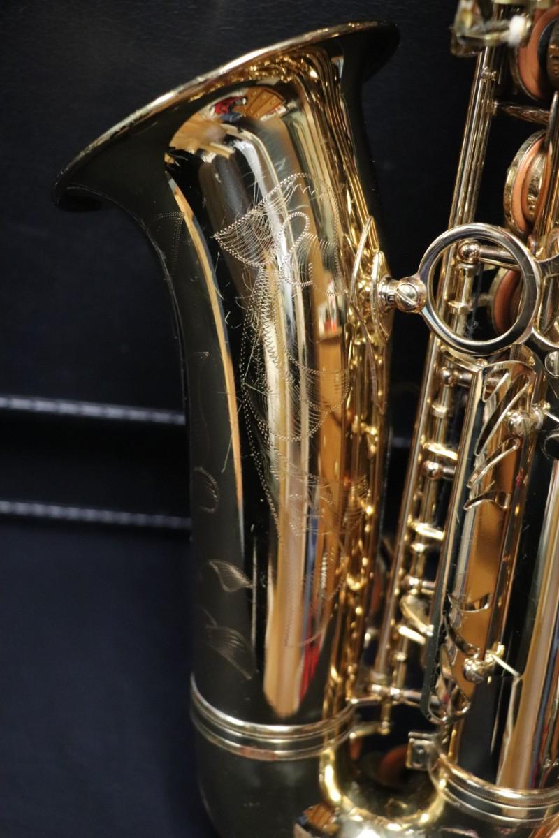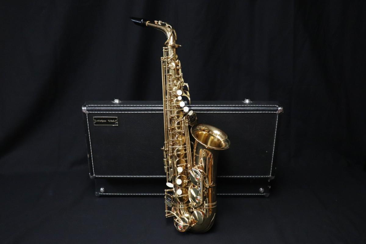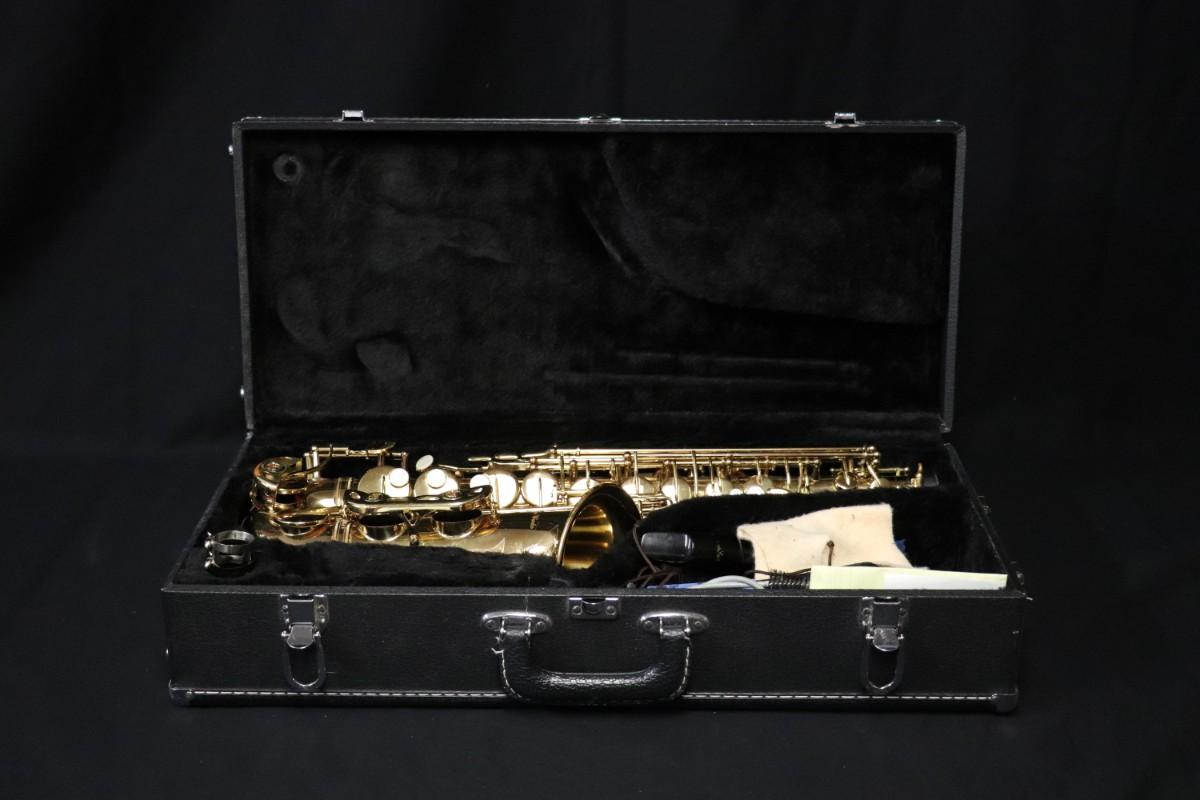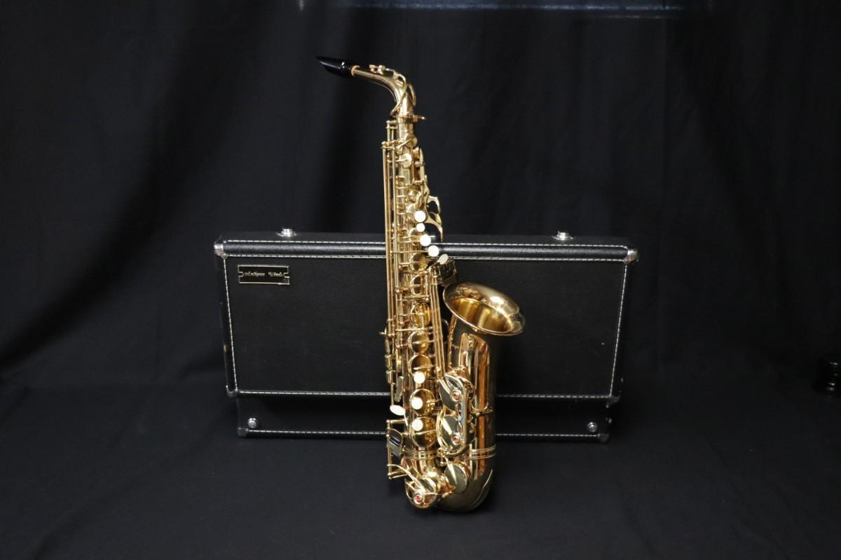 Gorgeous Antigua Winds Saxophone with case. Beautiful details- mother of pearl keys and engraved designs. Condition as shown.