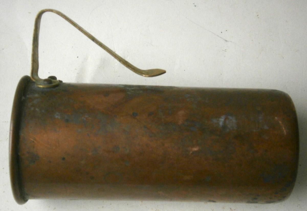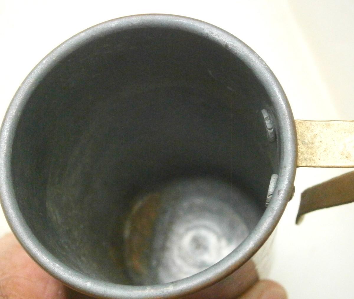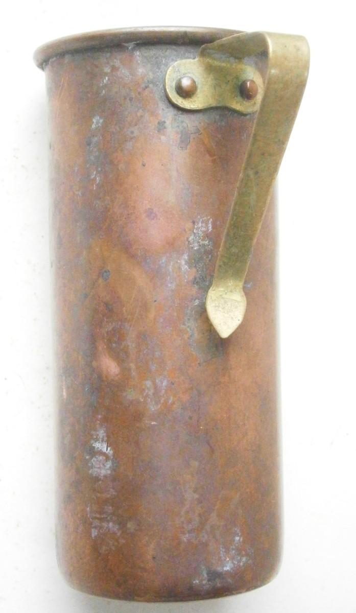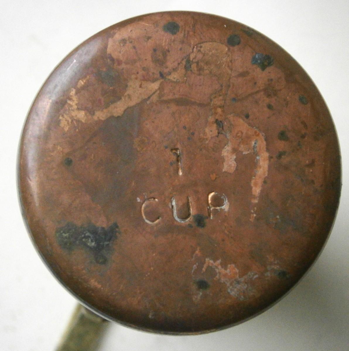 Antique 1 Cup Copper & Brass Measure, tin lined, 4 1/2 in. tall.