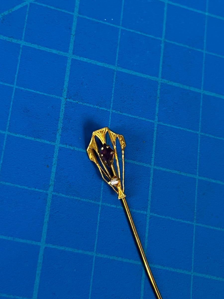 Antique 10 K Gold Pin with Small Garnet and a pearl