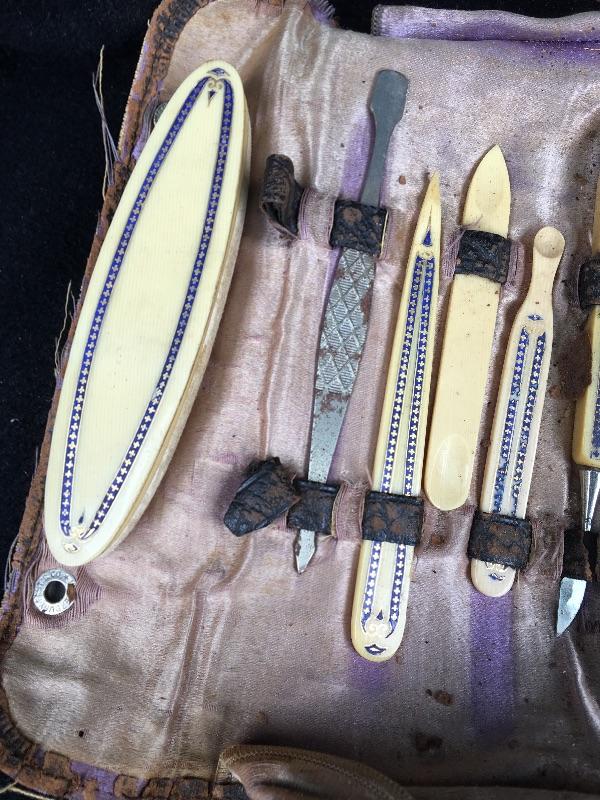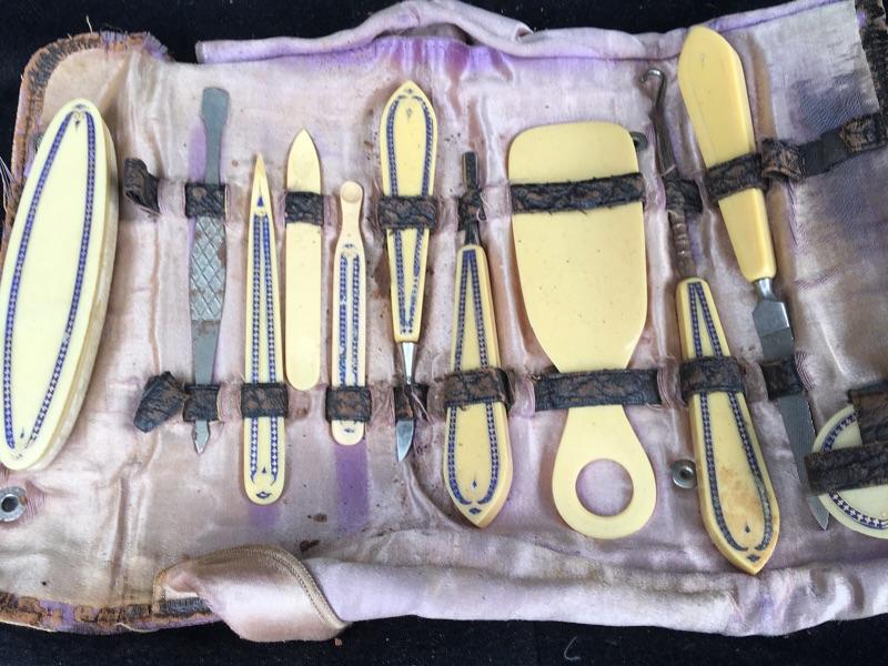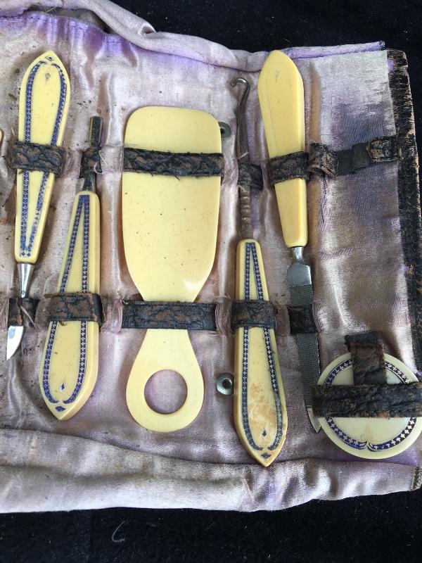 Antique 11 pc. Ivoroid Dresser Set Manicure Kit