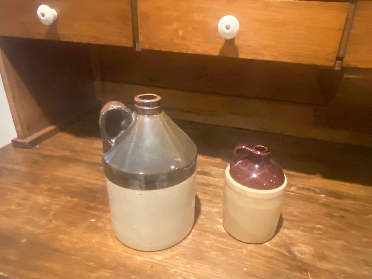 ANTIQUE SALT-GLAZED UPPER HALF STONEWARE JUGS