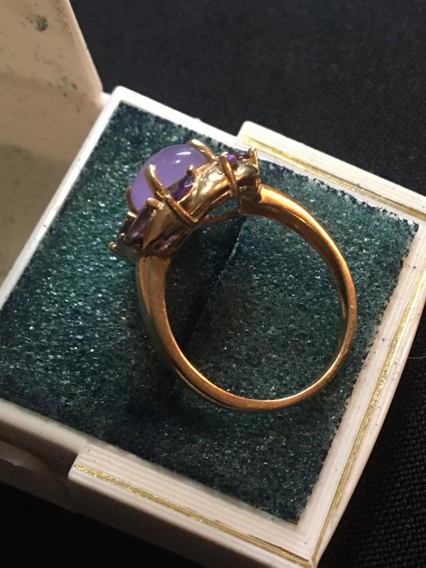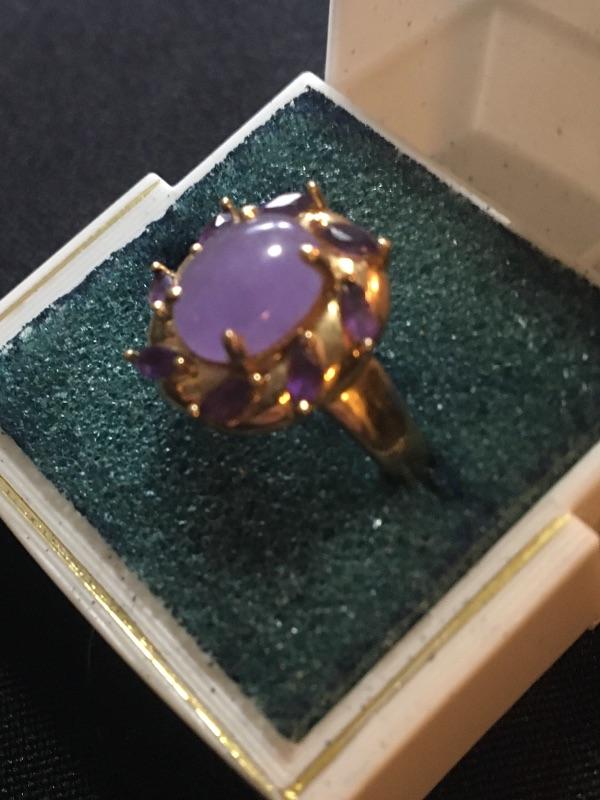 Antique 14k Gold Ring with Purple Jade and Amethysts. Size 8.