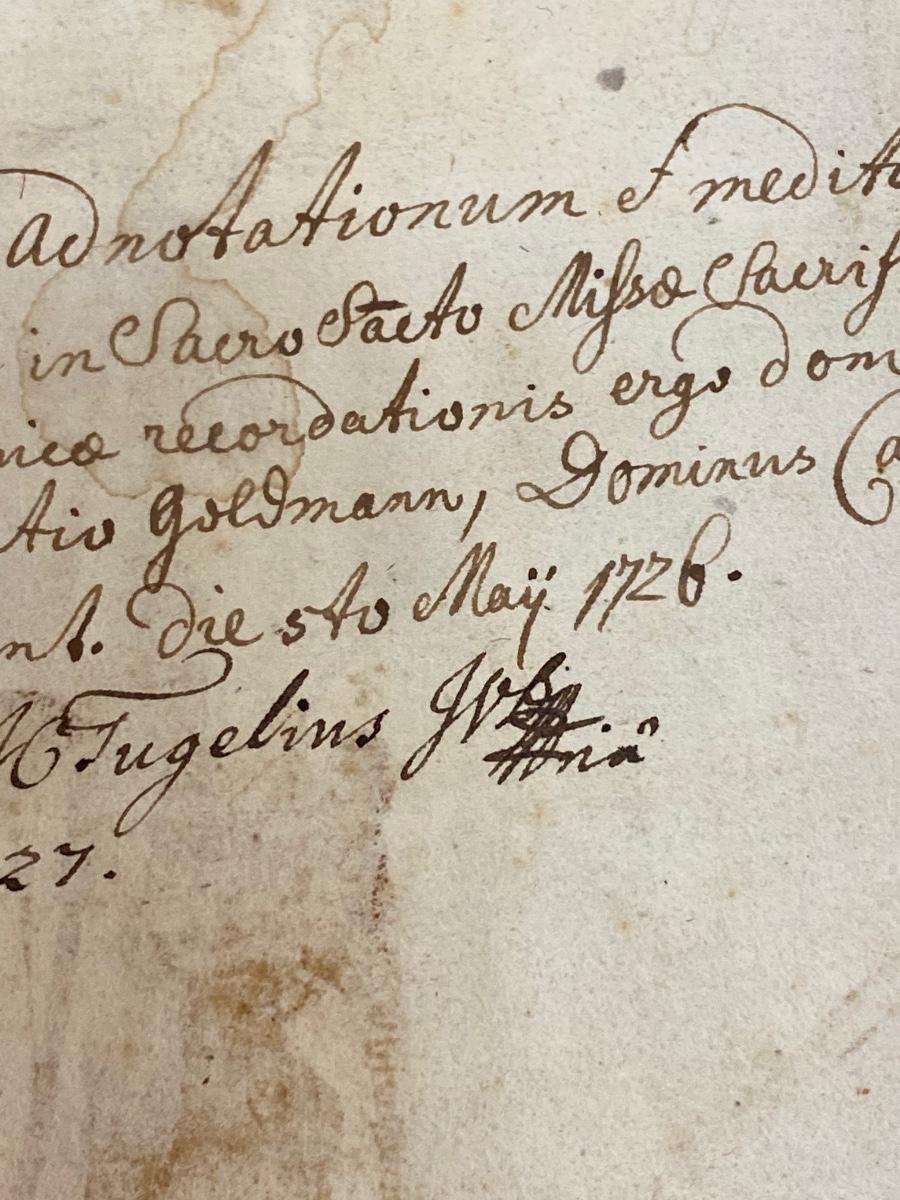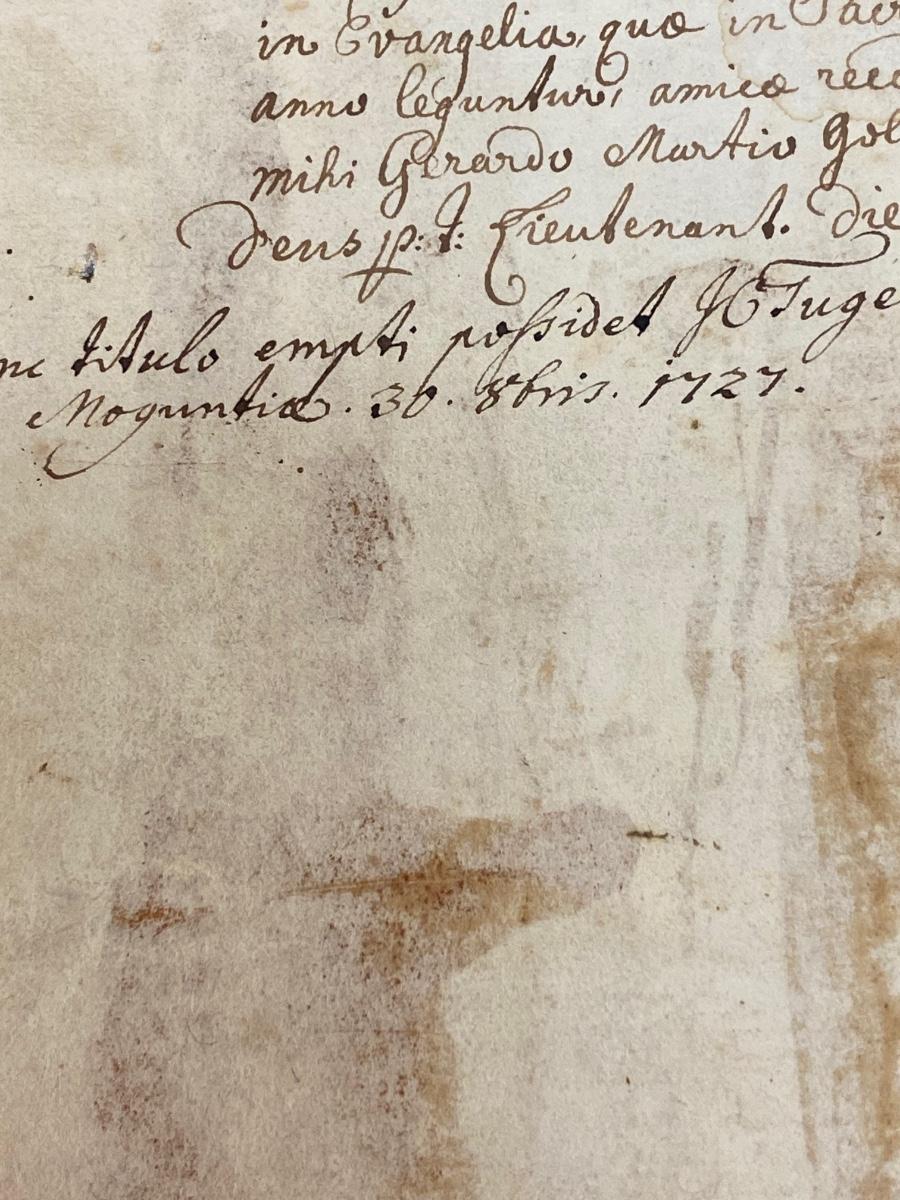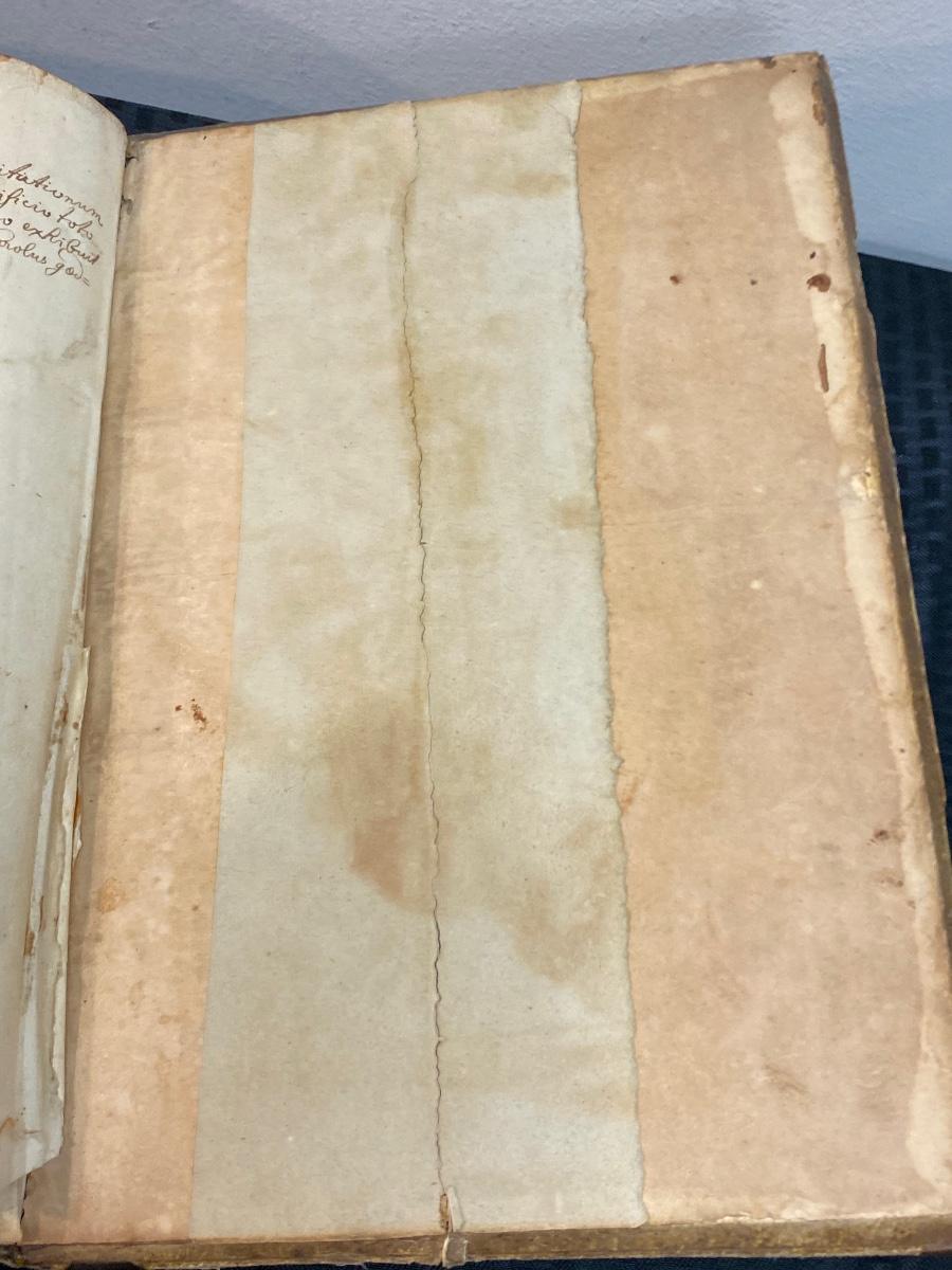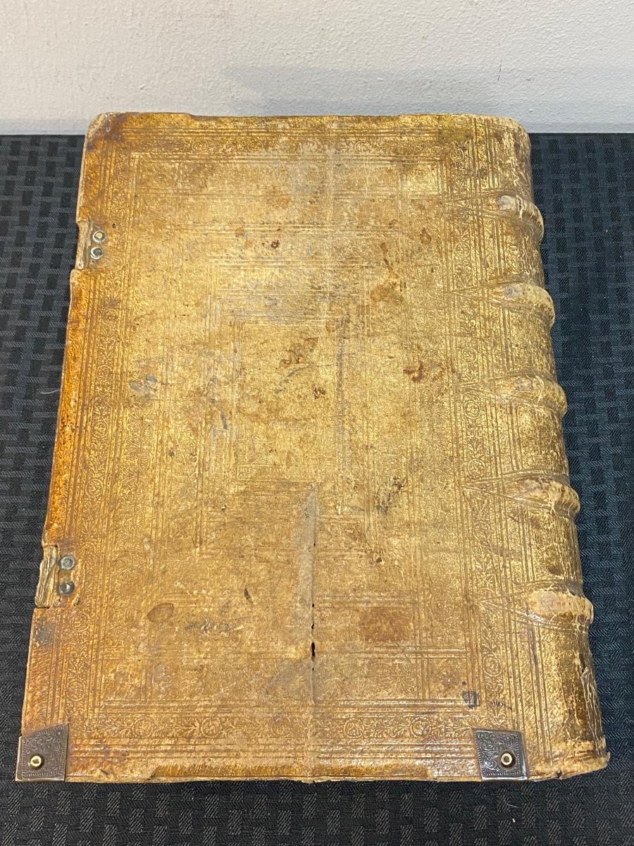 Antique book of gospel, believe to be dated 1607. It is in Latin and has been difficult to translate. Words are from Hieronymo (Jerome) Natali a Society of Jesus theologian. There is wear from age to the cover and pages. It seems to have pages missing from the appendix area in the back. There is also a handwritten note in back dated 1727. Interesting piece of literature.