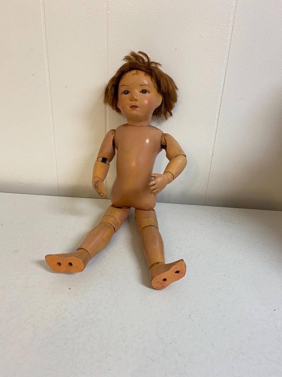 Antique 17" Schoenhut Wooden Walkable Boy Doll 1920, fully jointed. Human hair wig. Rare