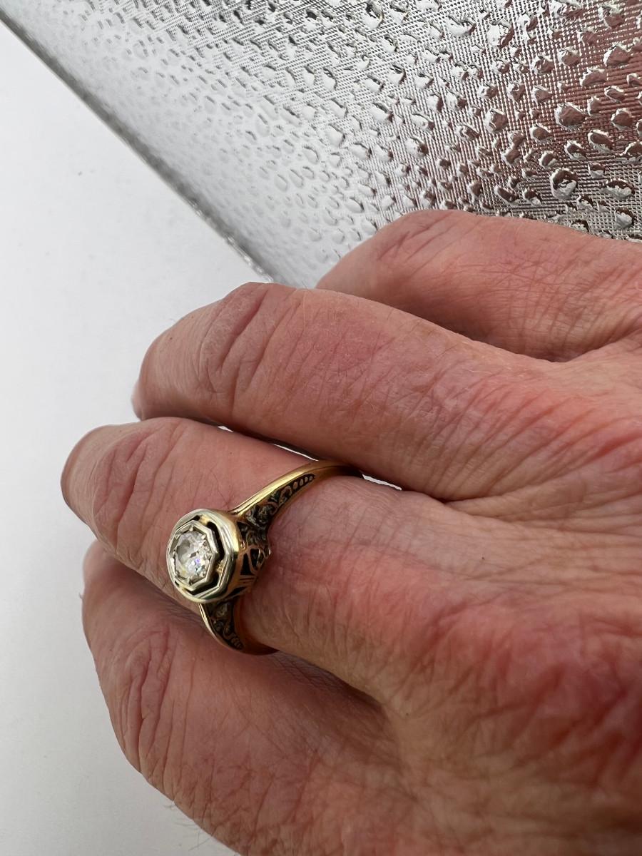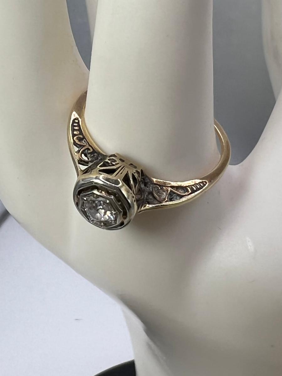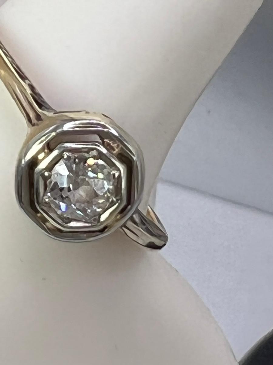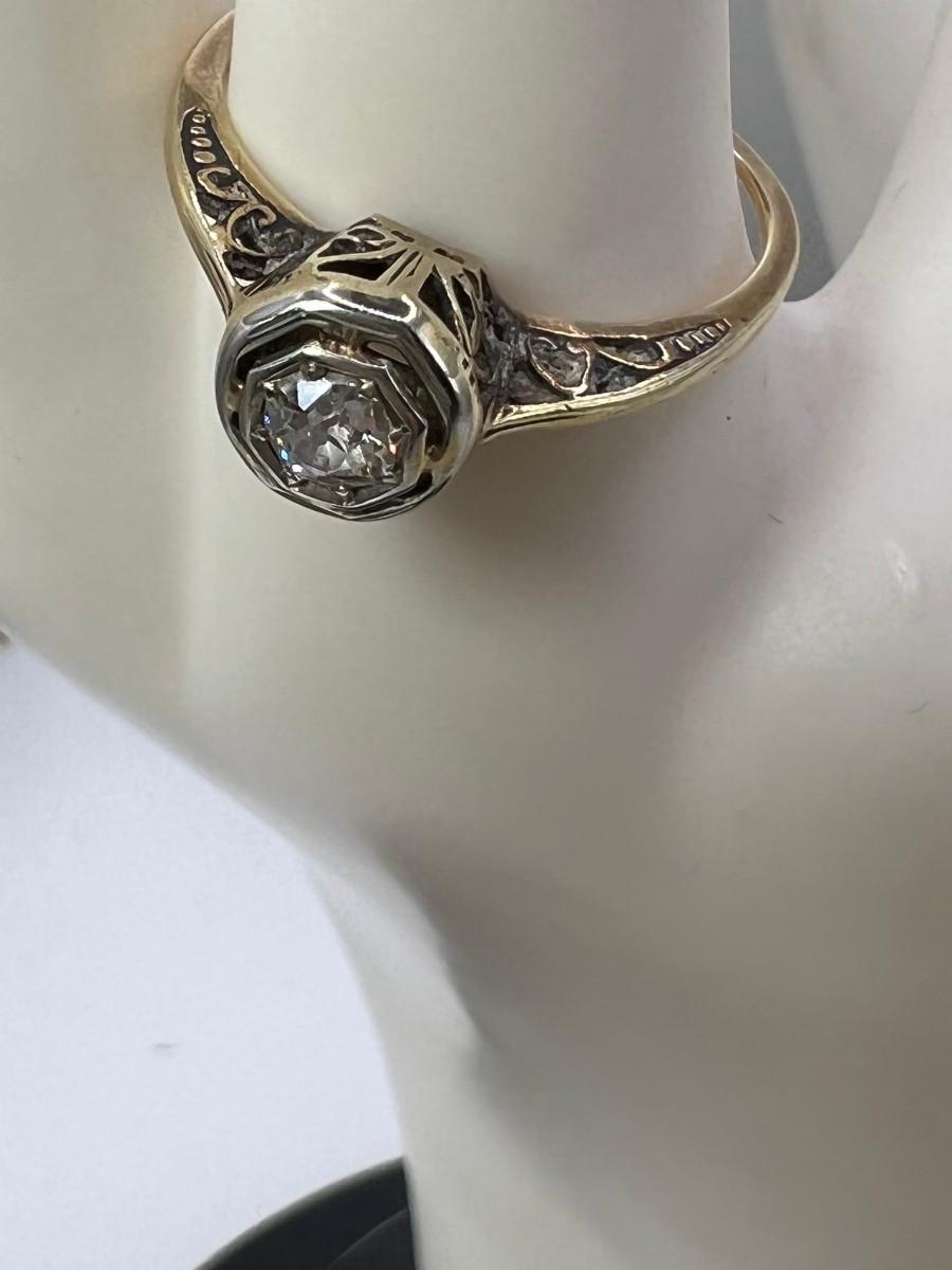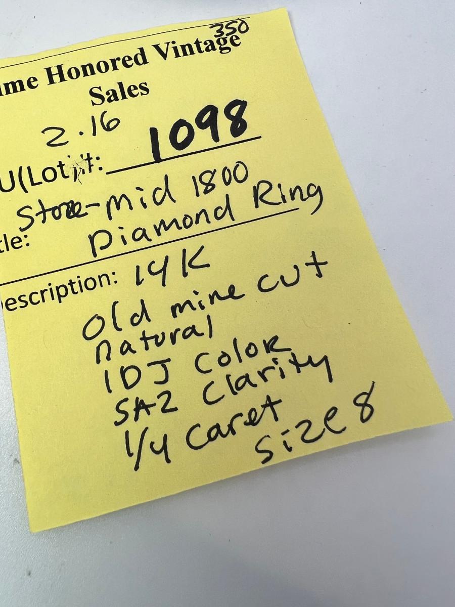 14K old natural Mine Cut Diamond 1DJ Color SA2 Clarity 1/4 CT 2.16 GRm gross