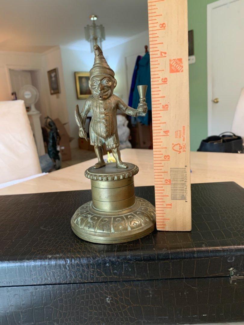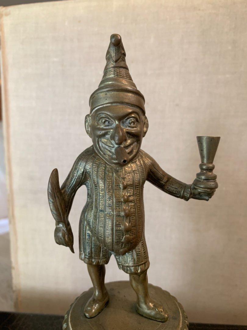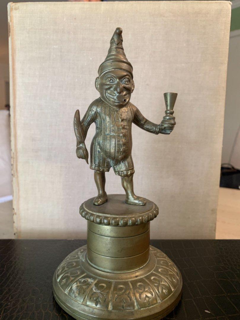 Vintage Brass "Mr. Punch" Pub Counter-Top Lighter used to light customers cigars and cigarettes with it's permanent flame. Has not been tested. This would be fun in a man-cave, home bar or great decor for a restaurant or bar. Definitely a conversation piece.