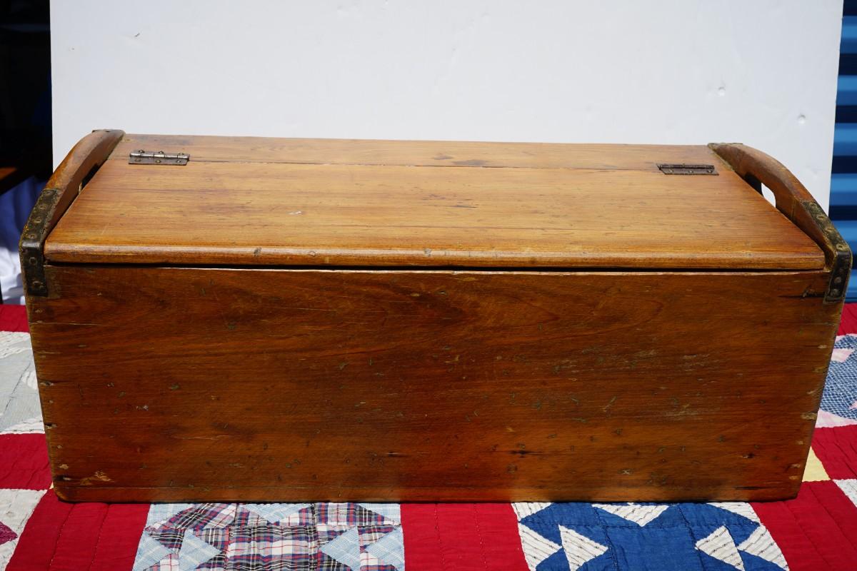 ANTIQUE 1860-70'S PINE DOUGH BOX WITH HANDLES.