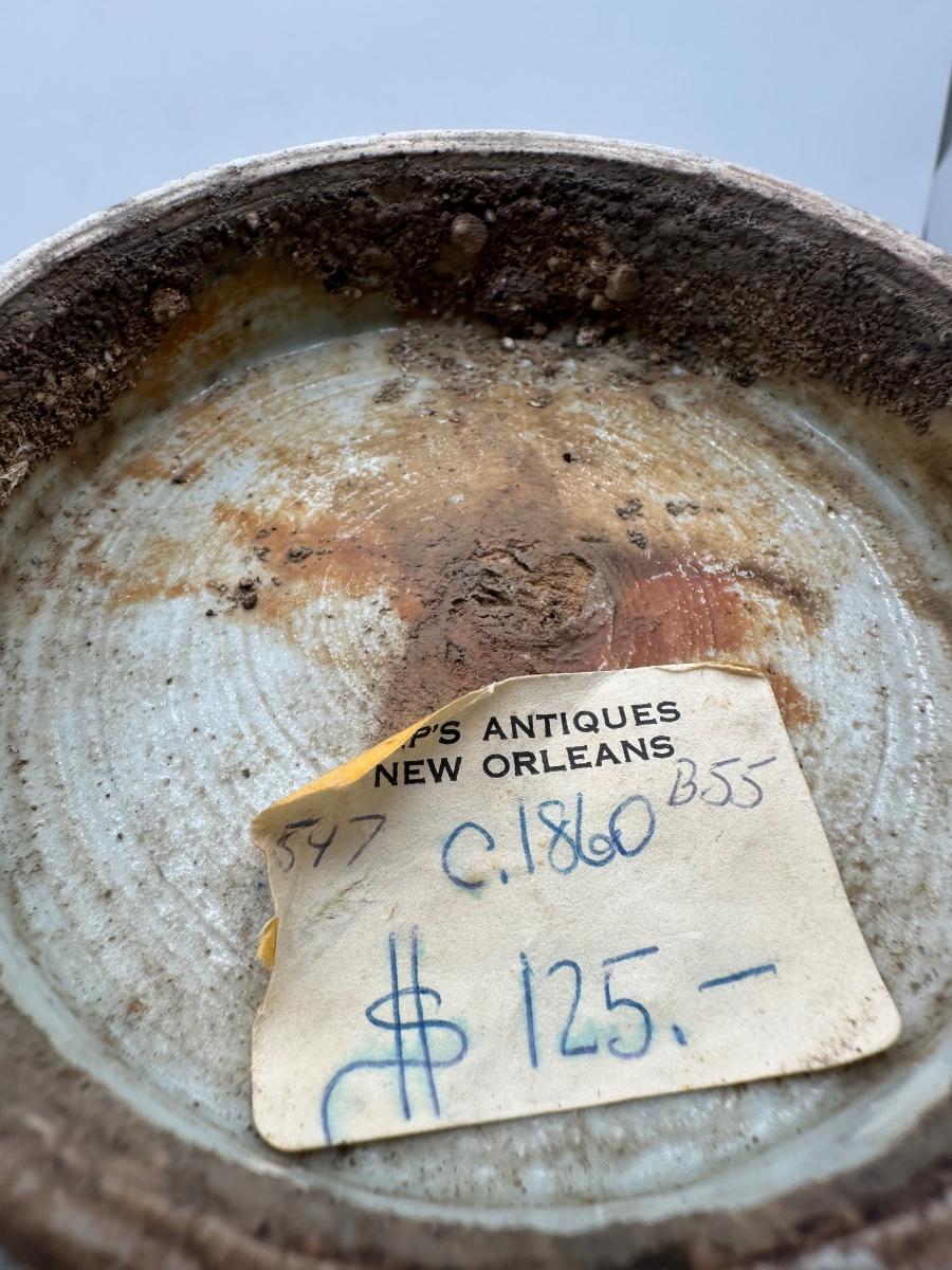 Lid was added to it, not original. Has age throughout as it from 1860s. See detailed pictures.