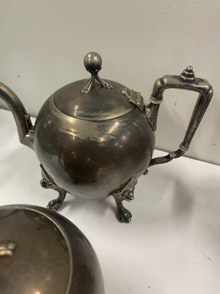 Antique 1870's Reed & Barton 5 piece silver plate tea set. Set includes tea pot, chocolate pot, creamer, sugar and waste bowl. Coffee pot is missing. Please examine photos carefully for condition.