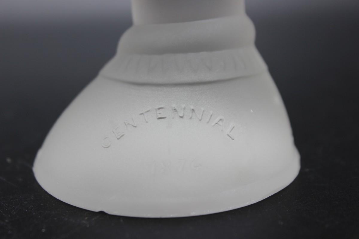 Antique 1876 Philadelphia Exposition Commemorative Frosted Glass Figurine Vase, the first World's Fair in the United States. There is a minor chip at the base of the figurine, but there are no other significant chips or cracks to the piece and is in good condition. Check pictures for more details and for sizing.