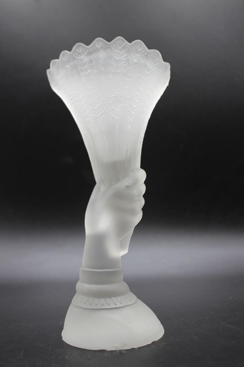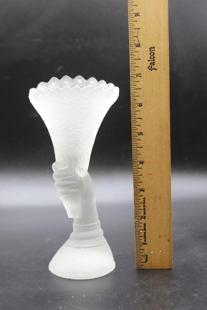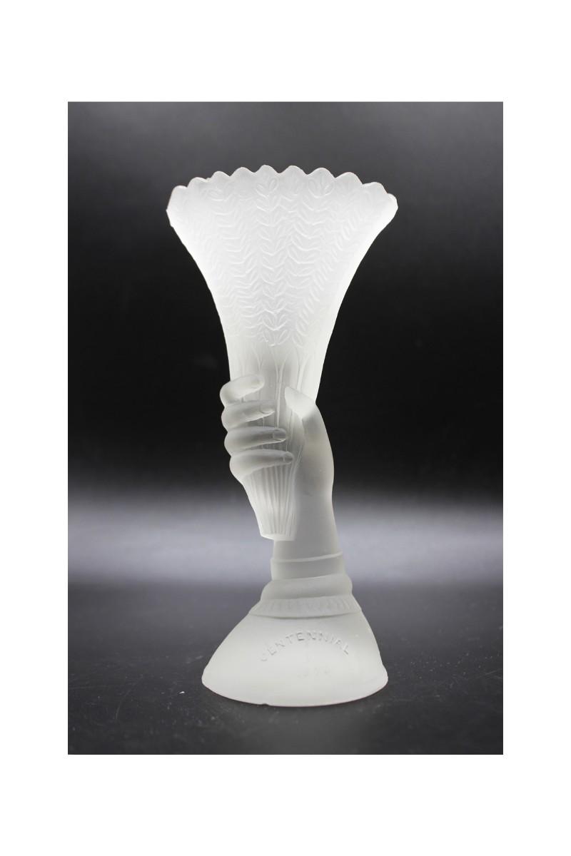 Antique 1876 Philadelphia Exposition Commemorative Frosted Glass Figurine Torch Vase