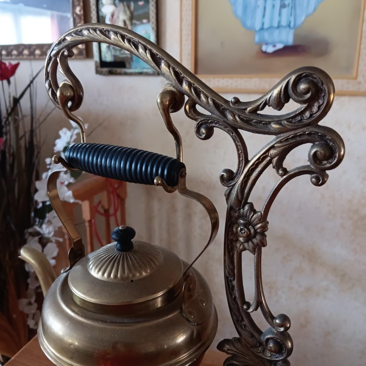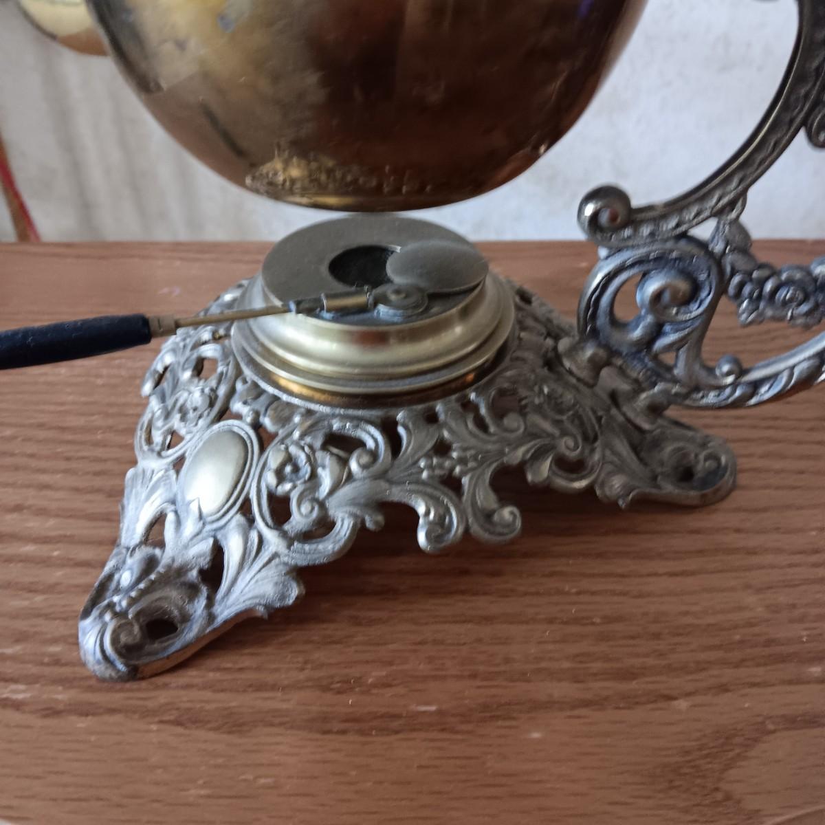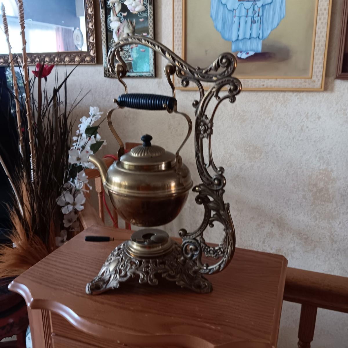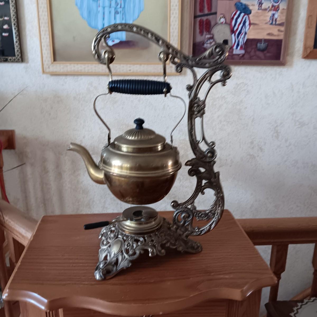 ANTIQUE 1896 B&H BRADLEY HUBBARD BRASS TEA POT & 1694 WARMER STAND