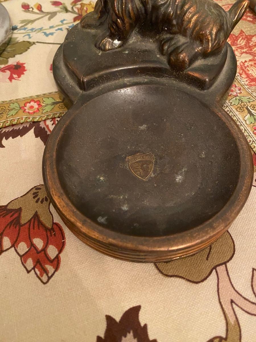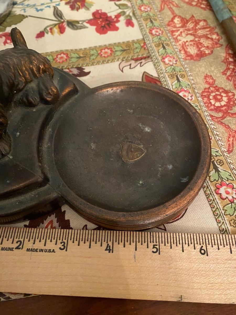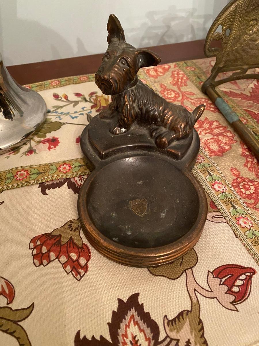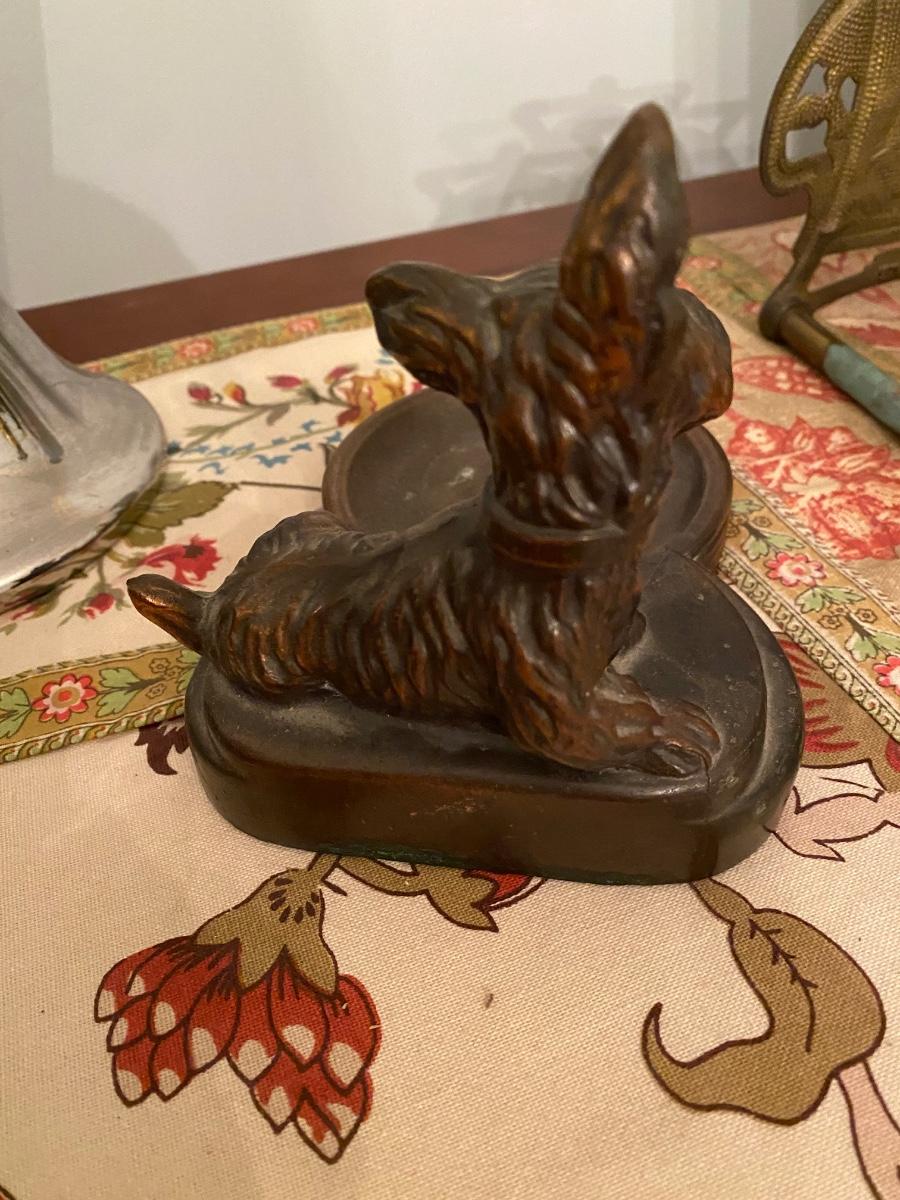 Antique 1900s Cast iron Scottie Dog ashtray, trinket tray coin holder or card holder desktop decor . Has Niagara Falls logo. Great newlywed gift! Woof! Approx. 5" x 6" long