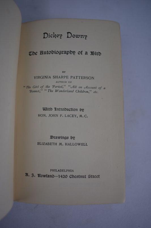 Antique 1903 Small Hardcover Book Dickey Downey The Autobiography of a Bird by Patterson