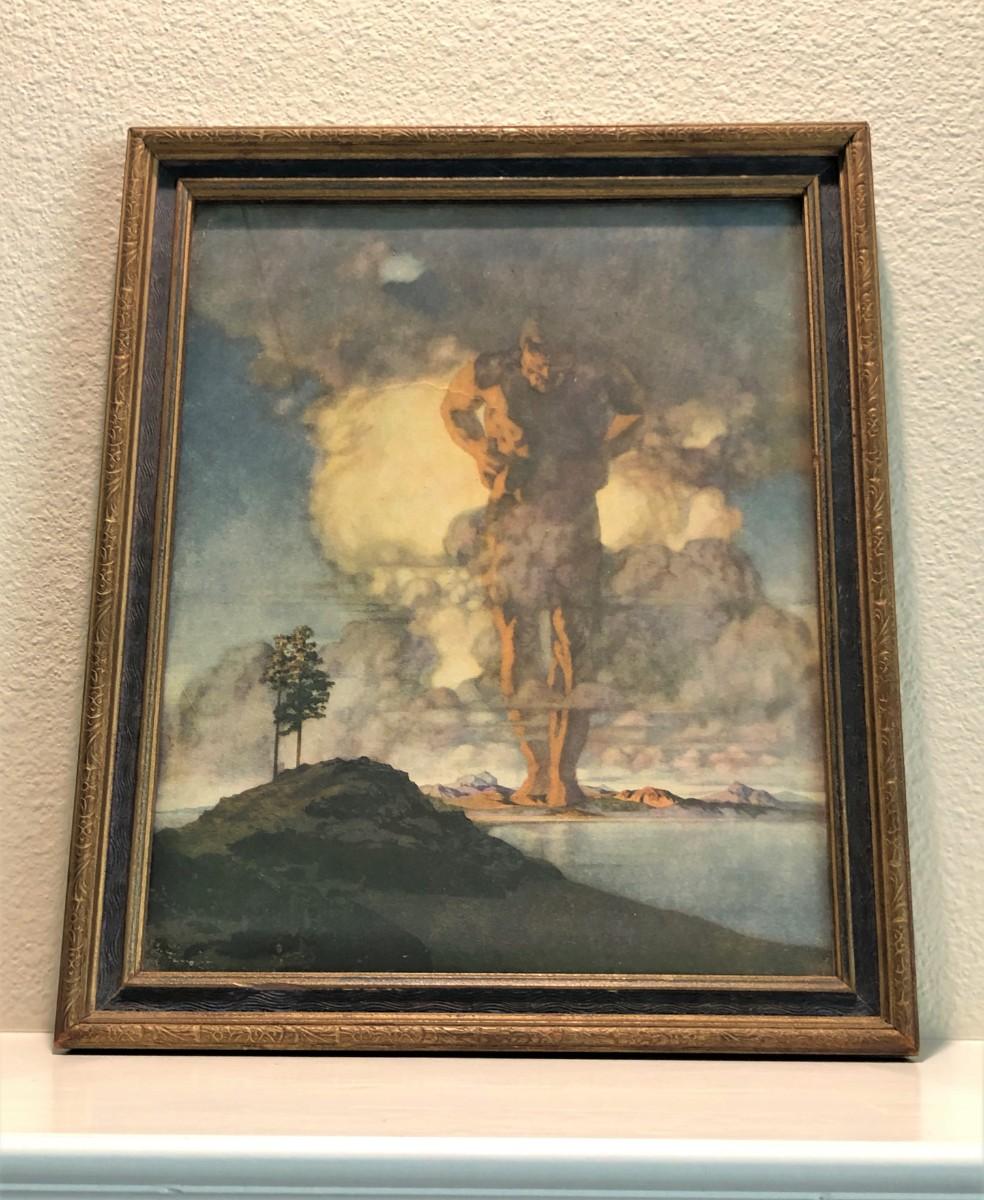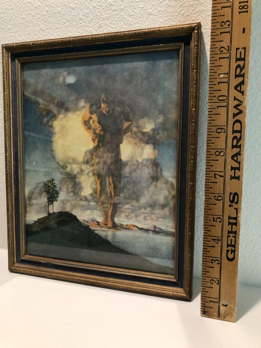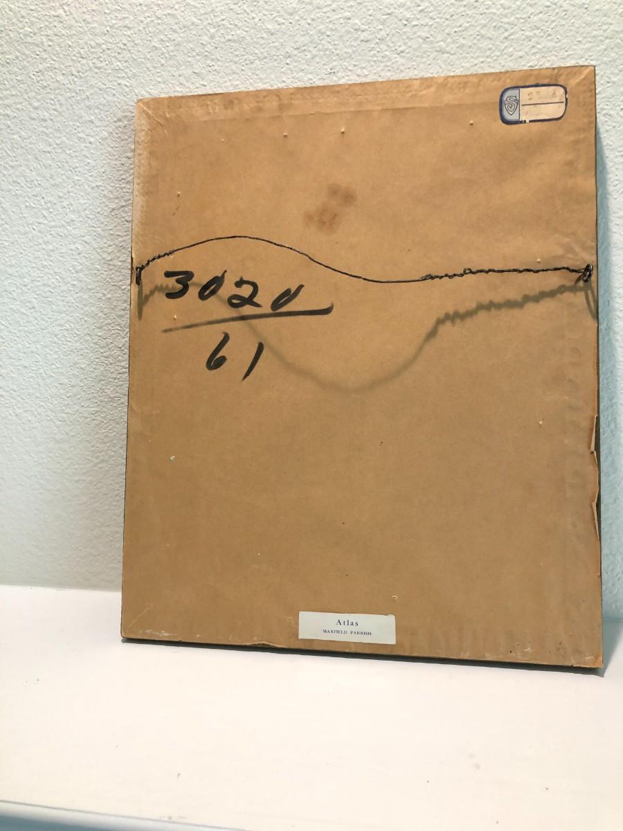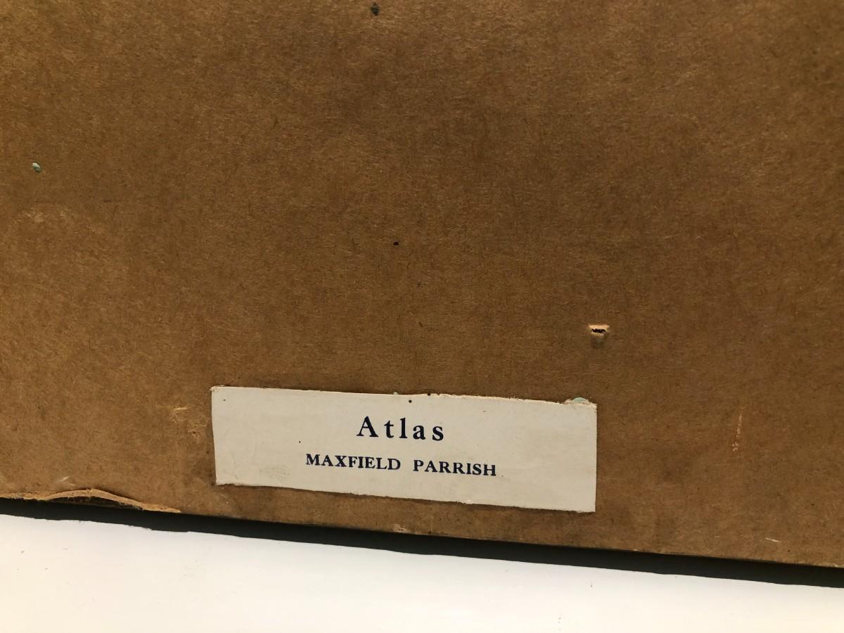 Antique 1914 Print of Atlas by Maxfield Parrish. In good condition, with some signs of wear from age (shown in photos). Antique frame.