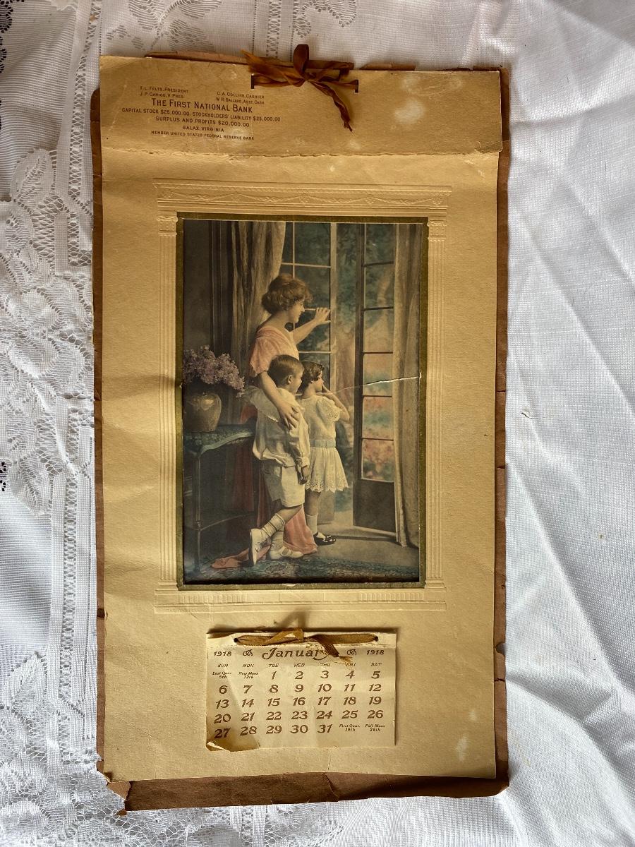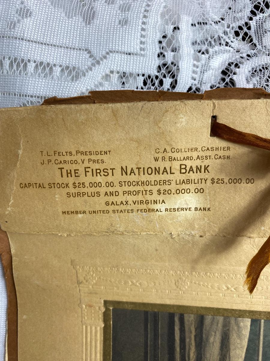 Antique 1918 Bank Advertising Calendar First National Bank Galax Virginia