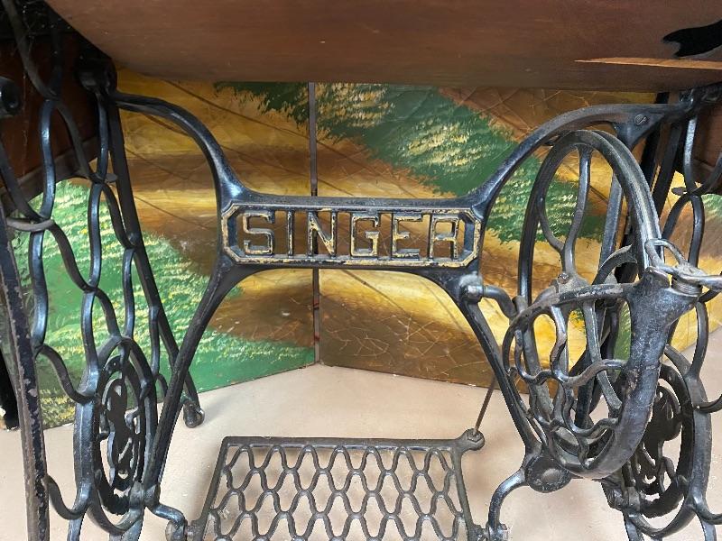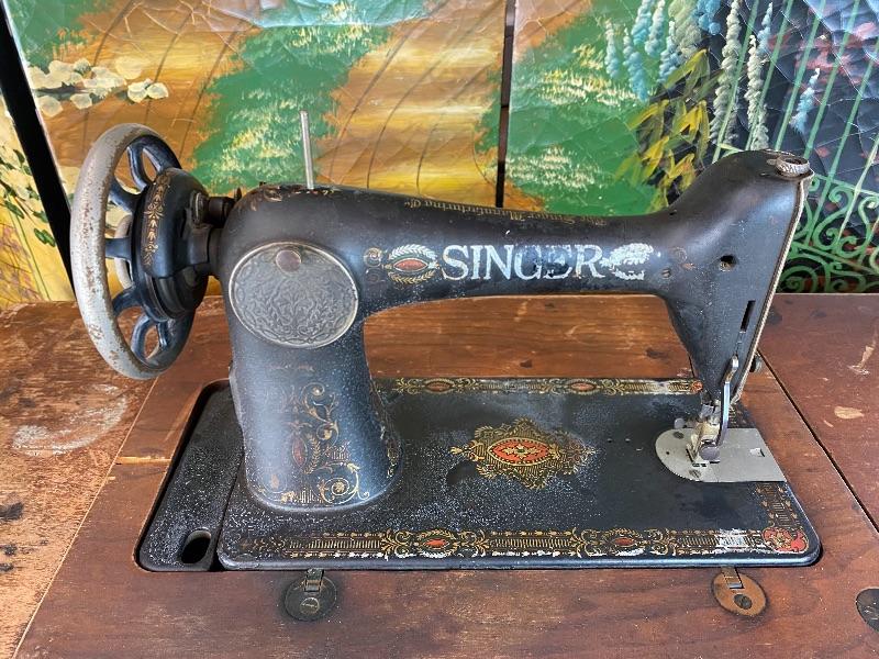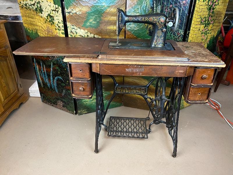 Lot # 135 -Antique 1923 Singer 66 Red Eye Sewing Machine w/Cabinet