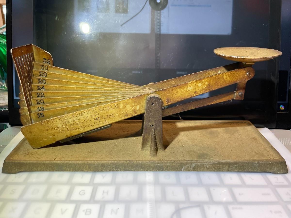 Antique 1924 Acme Egg Grading Scale/Specialty Mfg. Co. 10" Long in Fair Condition as Pic'd, $10 Domestic Shipping.