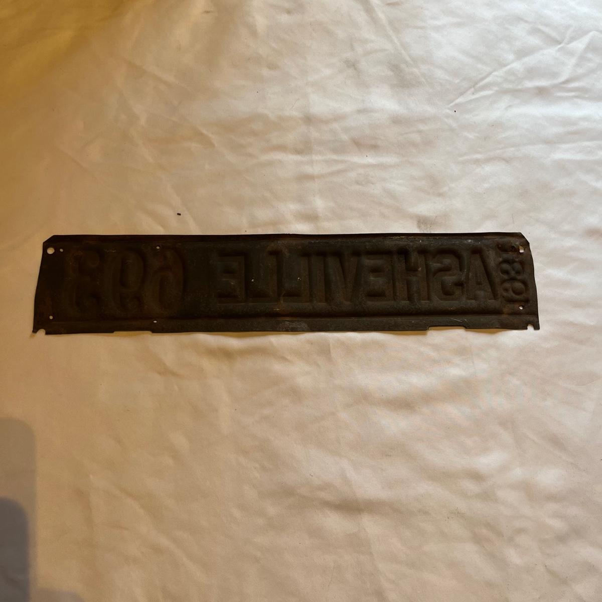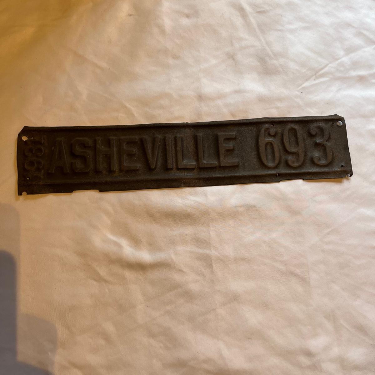Lot includes a 1931 Asheville license plate topper. Plate measures 2.75” x 13.5”.