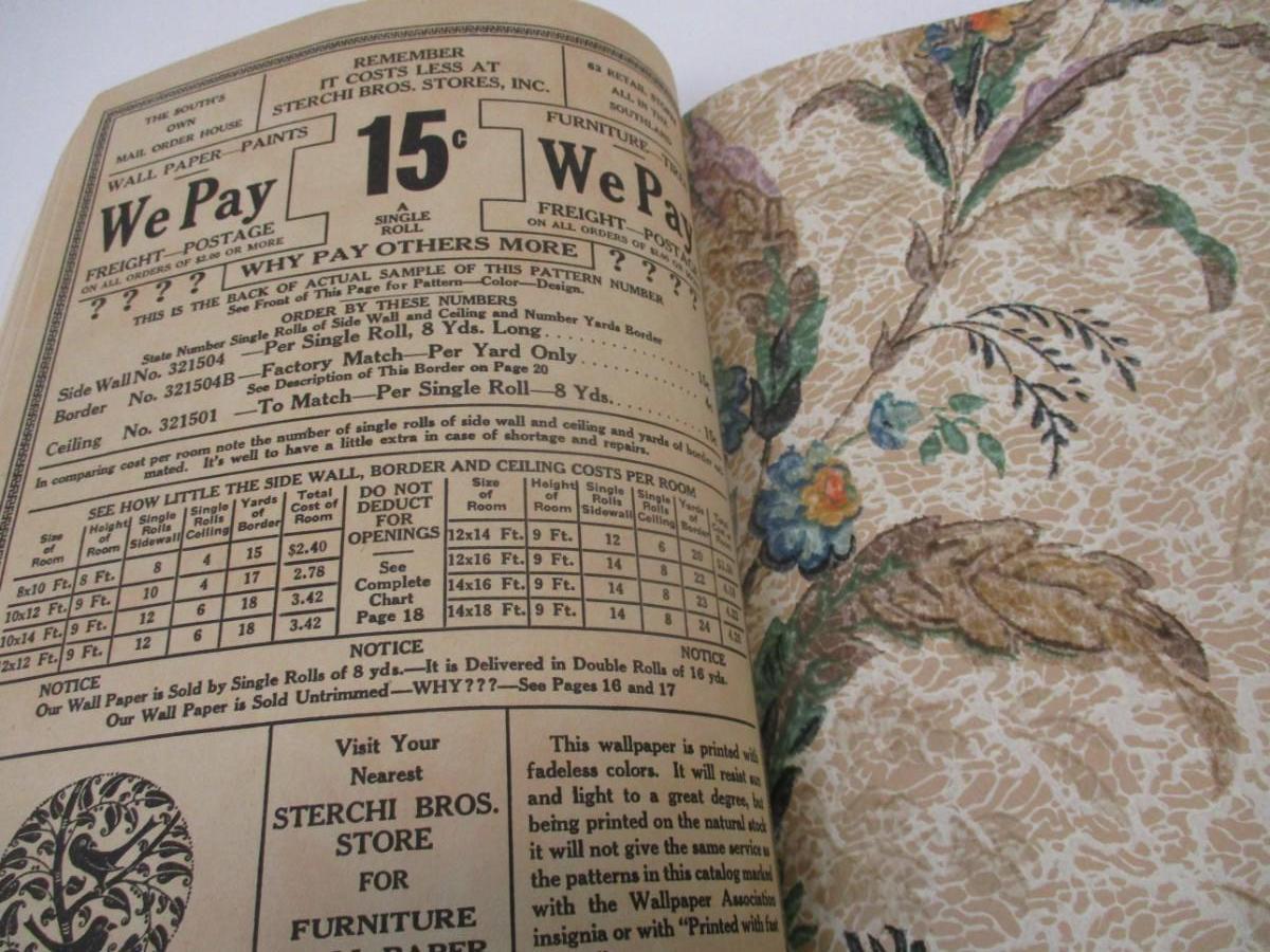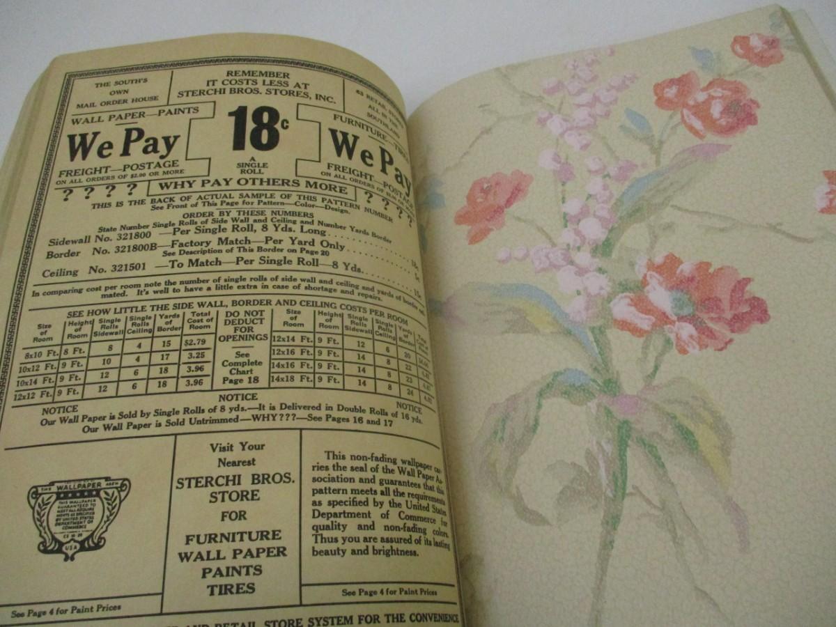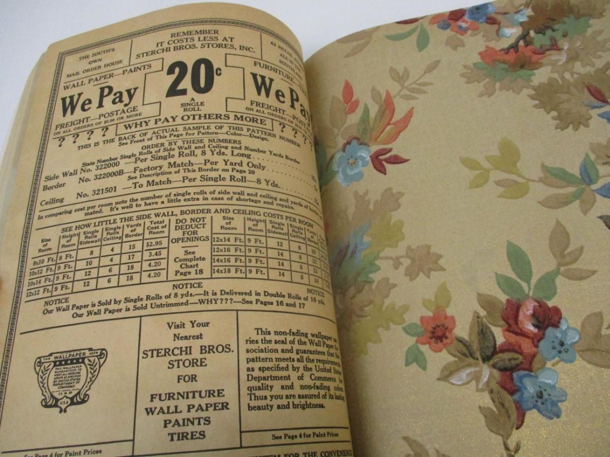 Antique 1931 Sterchi Bros. Store Catalog, Wallpaper Samples, Tires Paints & Furnishings 1932