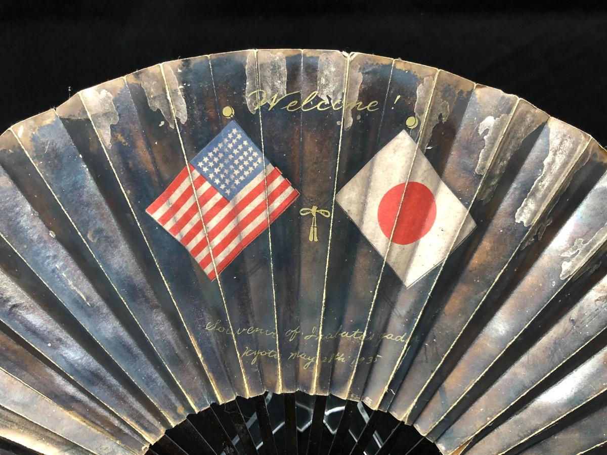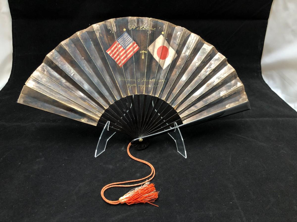 Antique 1935 Kyoto Japan Souvenir USA Flags Decorative Fan
