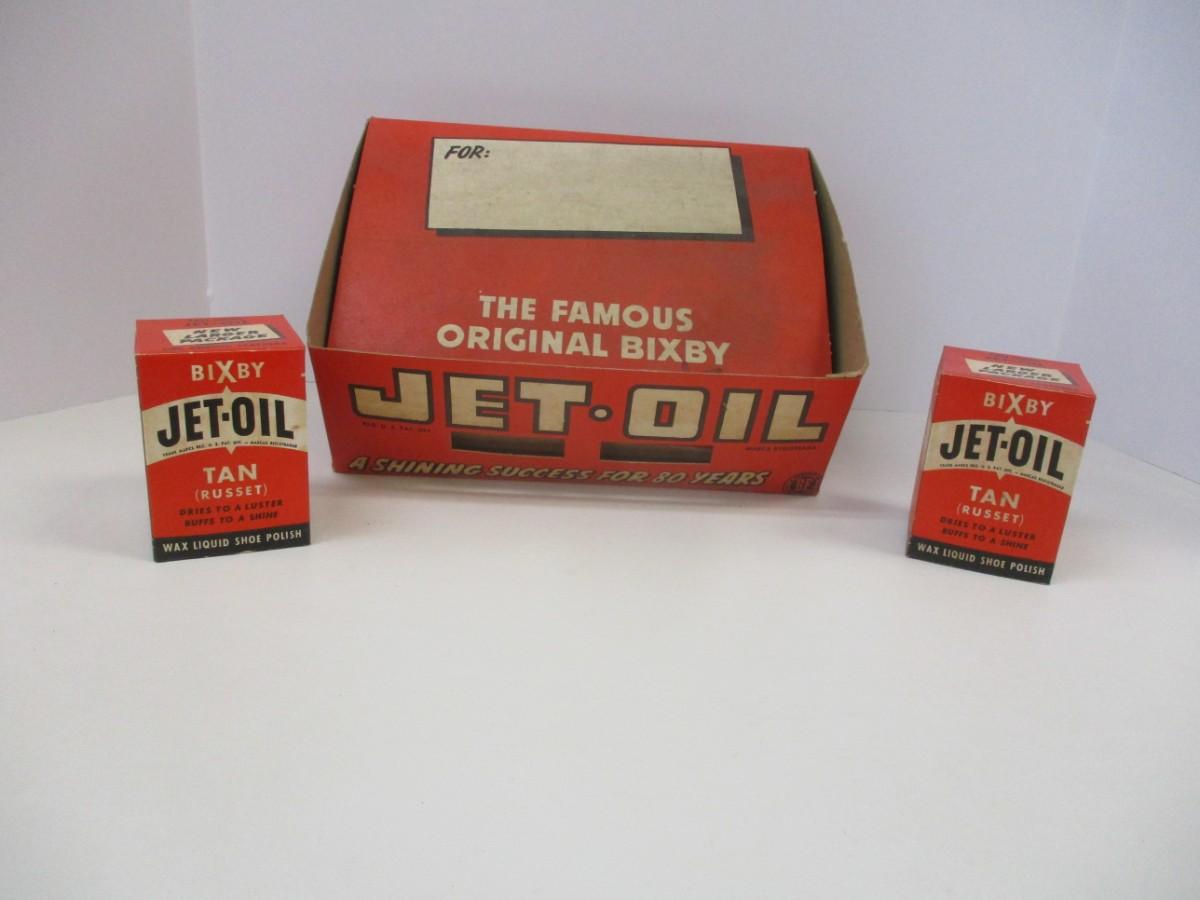 Antique 1940's The Famous Original Jet Oil Display Box & 2 Shoe Polish Bottles