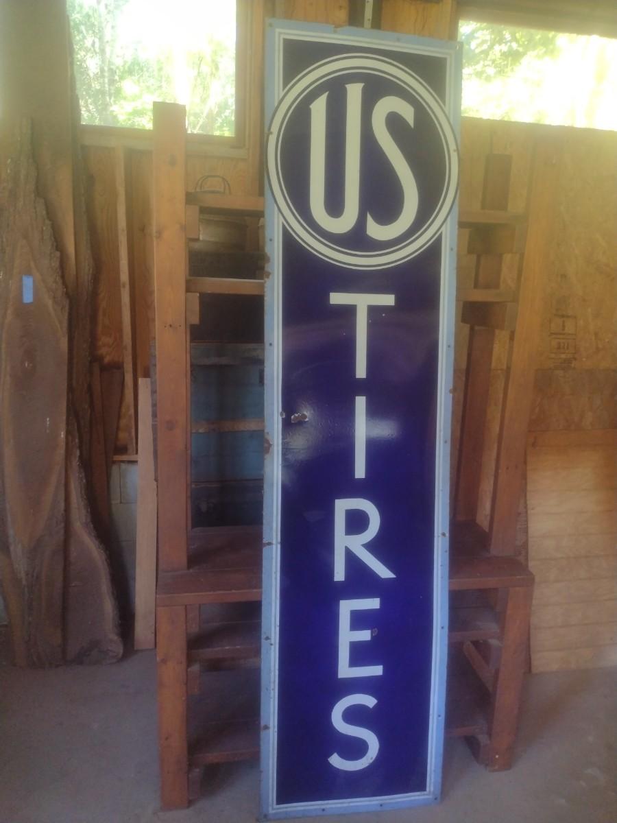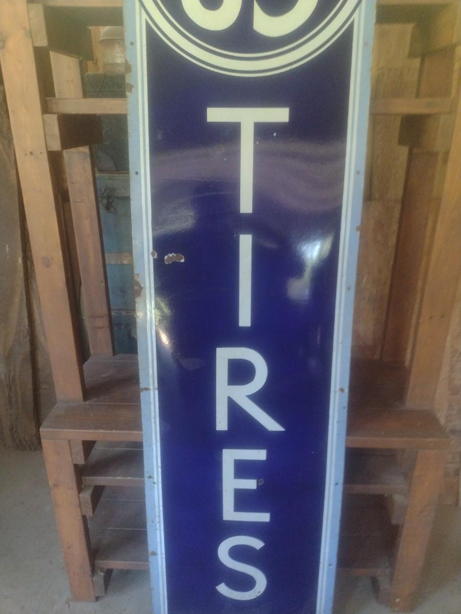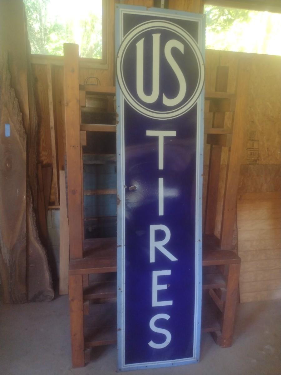 Antique 1950's Porcelain Covered Metal Commercial 96" x 24" Advertising Sign for US Tires. Shipping must be by a third party only such as UPS freight or U-Ship or others. Auction firm will make sure item is available for buyer's shipper of choice to pick item up. Buyer agrees to pay all fees associated with the shipping of this item and to make arrangements for its pickup from the sale site.