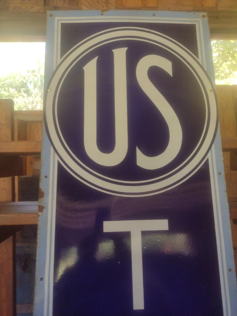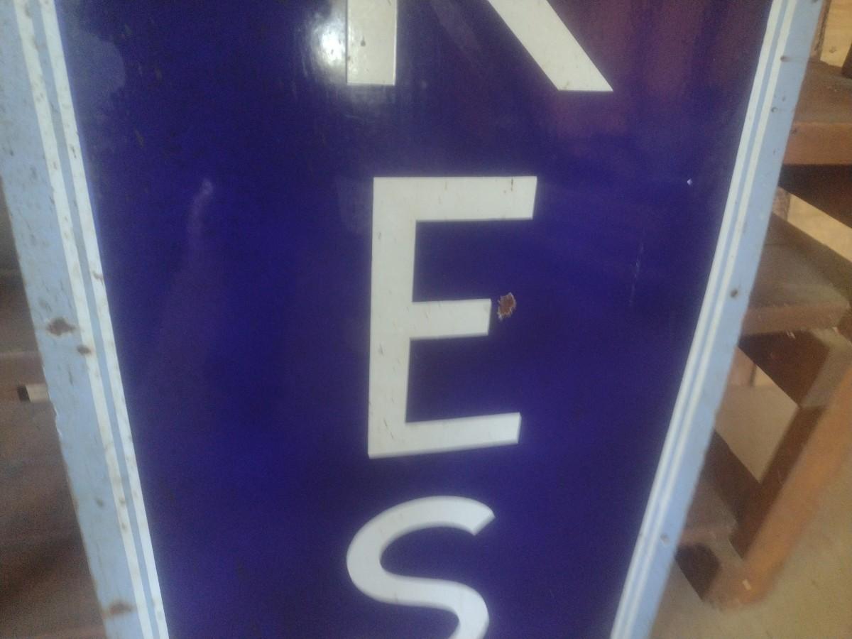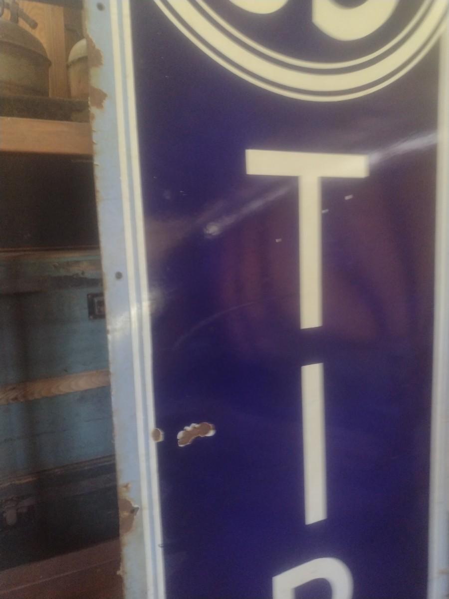 Antique 1950's Porcelain Covered Metal Commercial 96" x 24" Advertising Sign for US Tires. Shipping must be by a third party only such as UPS freight or U-Ship or others. Auction firm will make sure item is available for buyer's shipper of choice to pick item up. Buyer agrees to pay all fees associated with the shipping of this item and to make arrangements for its pickup from the sale site.