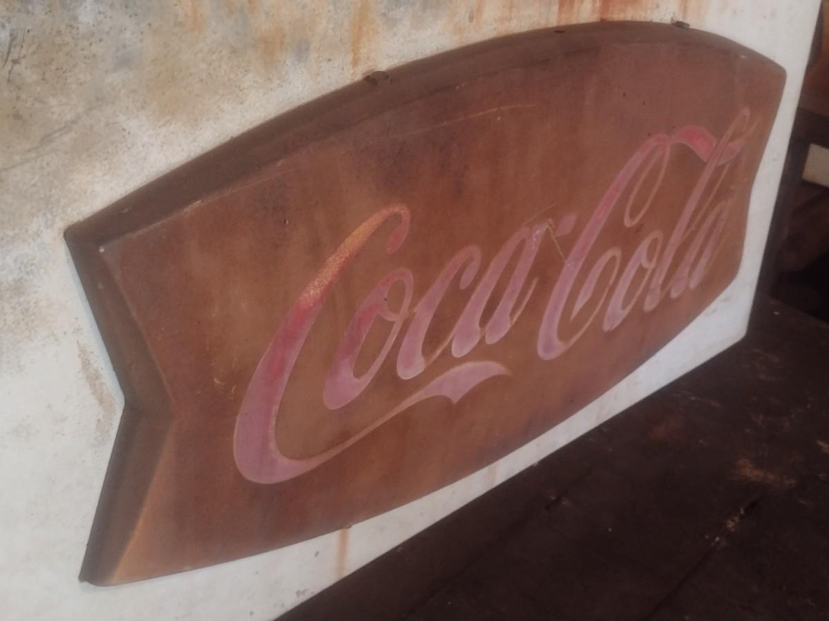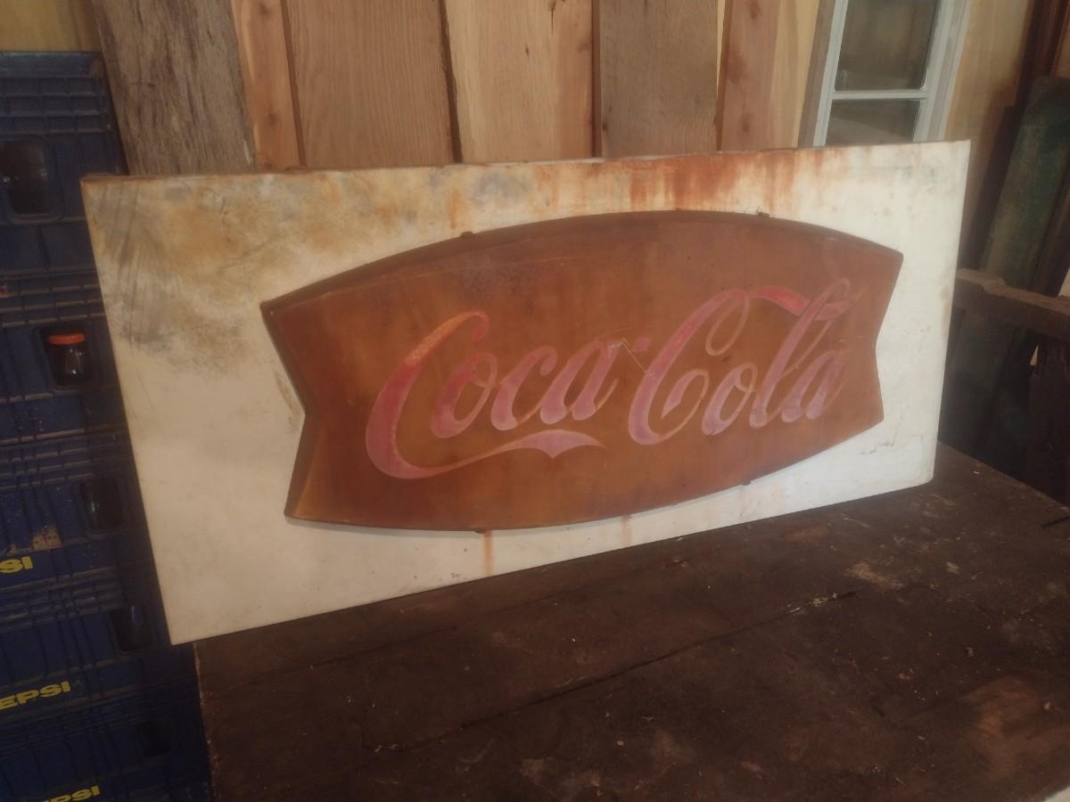 Antique 1950's Metal Coca-Cola Fishtail Advertising Sign on Metal Back Mount Choice A