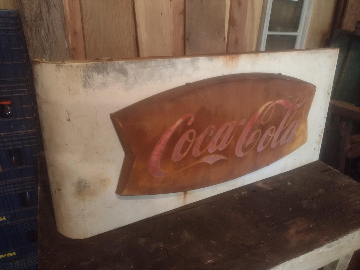 Antique 1950's Metal Coca-Cola Fishtail Advertising Sign on Metal Back Mount Choice B