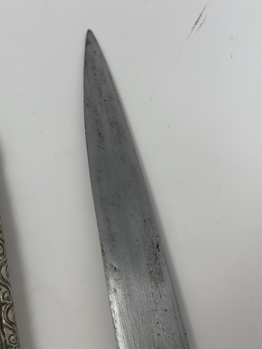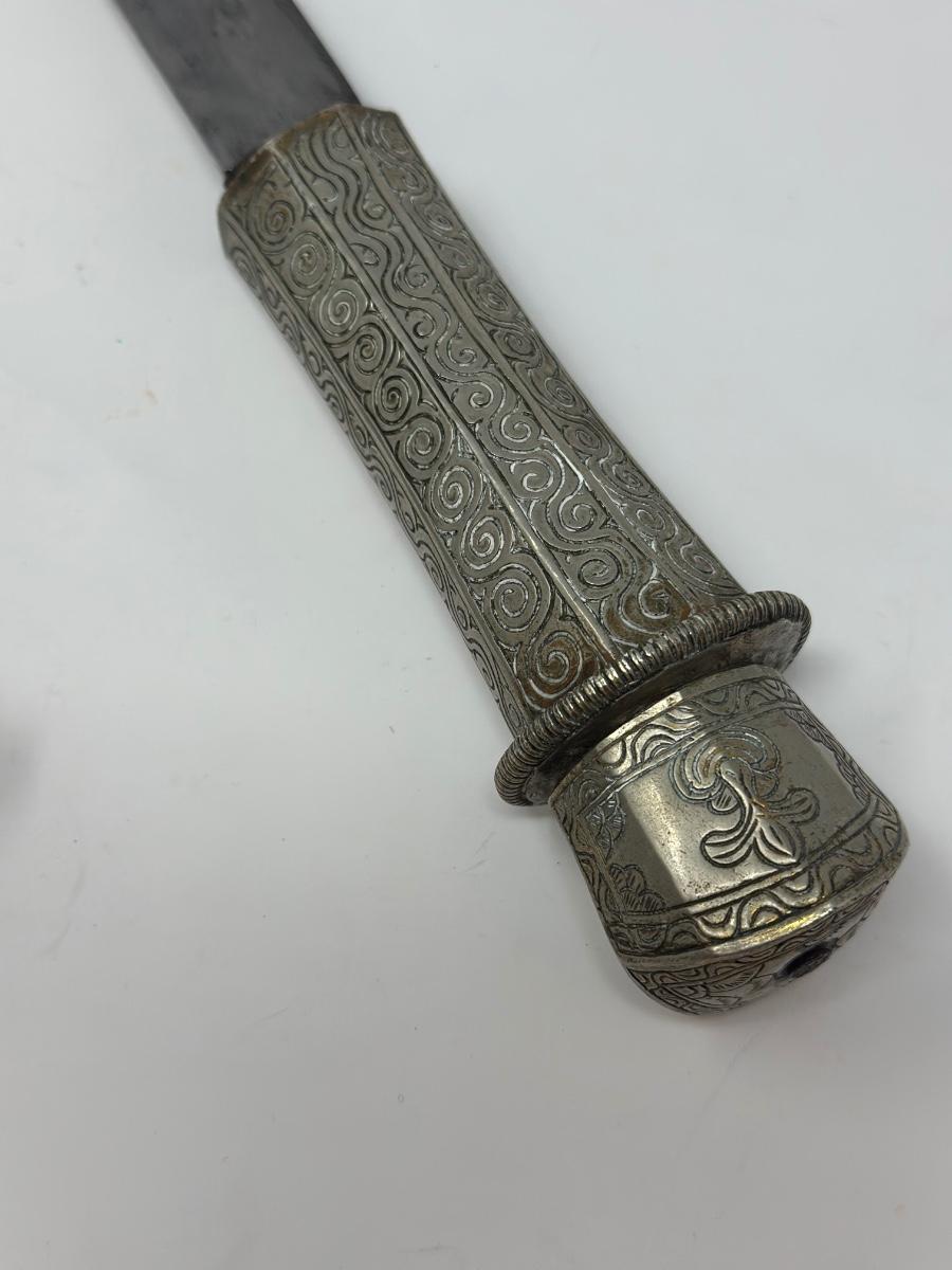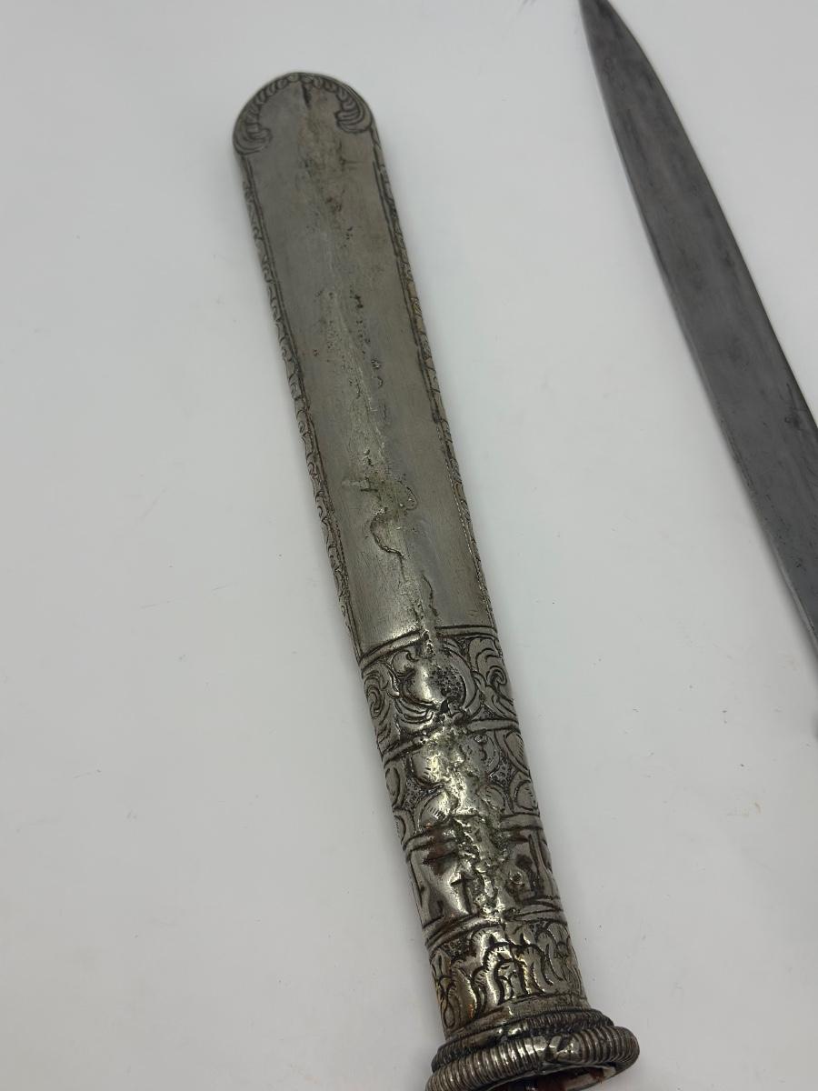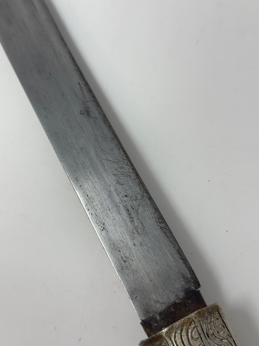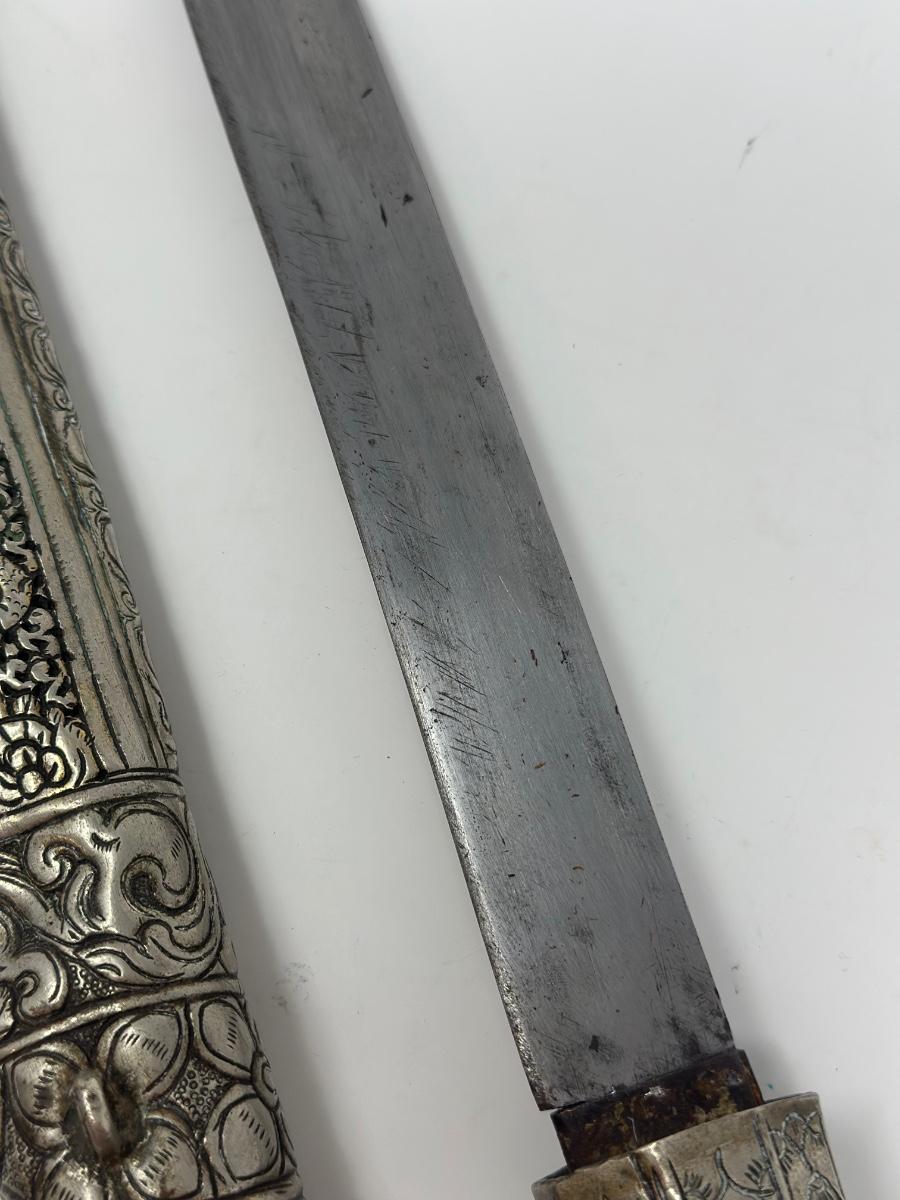 Antique 19th century intricately engraved dagger & scabbard of Tibetan or Bhutanese origin.