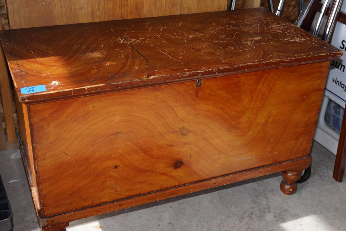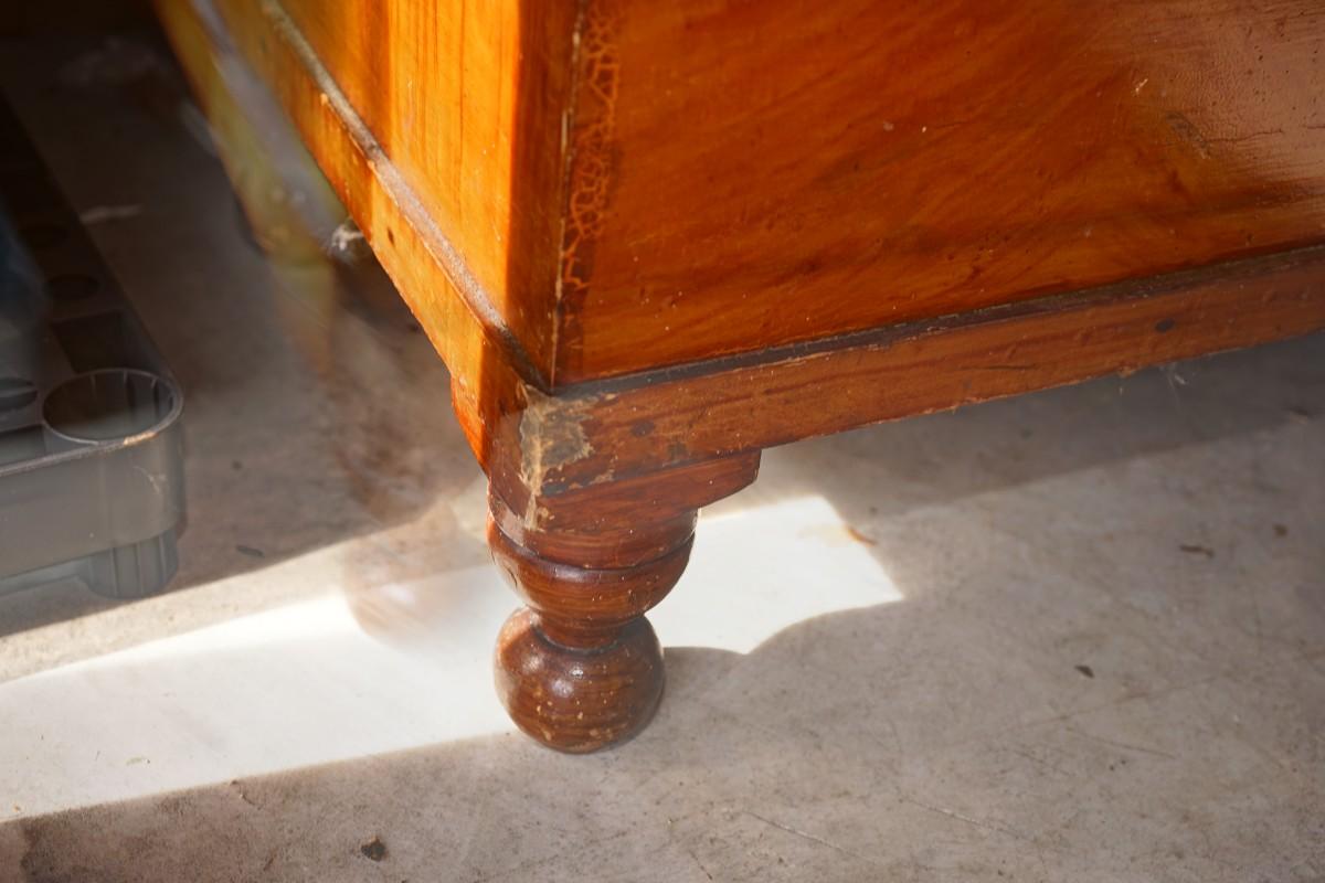 ANTIQUE 19TH CENTURY 1840-50 'S GRAIN PAINTED PINE BLANK CHEST /W BUN STYLE FOOTINGS