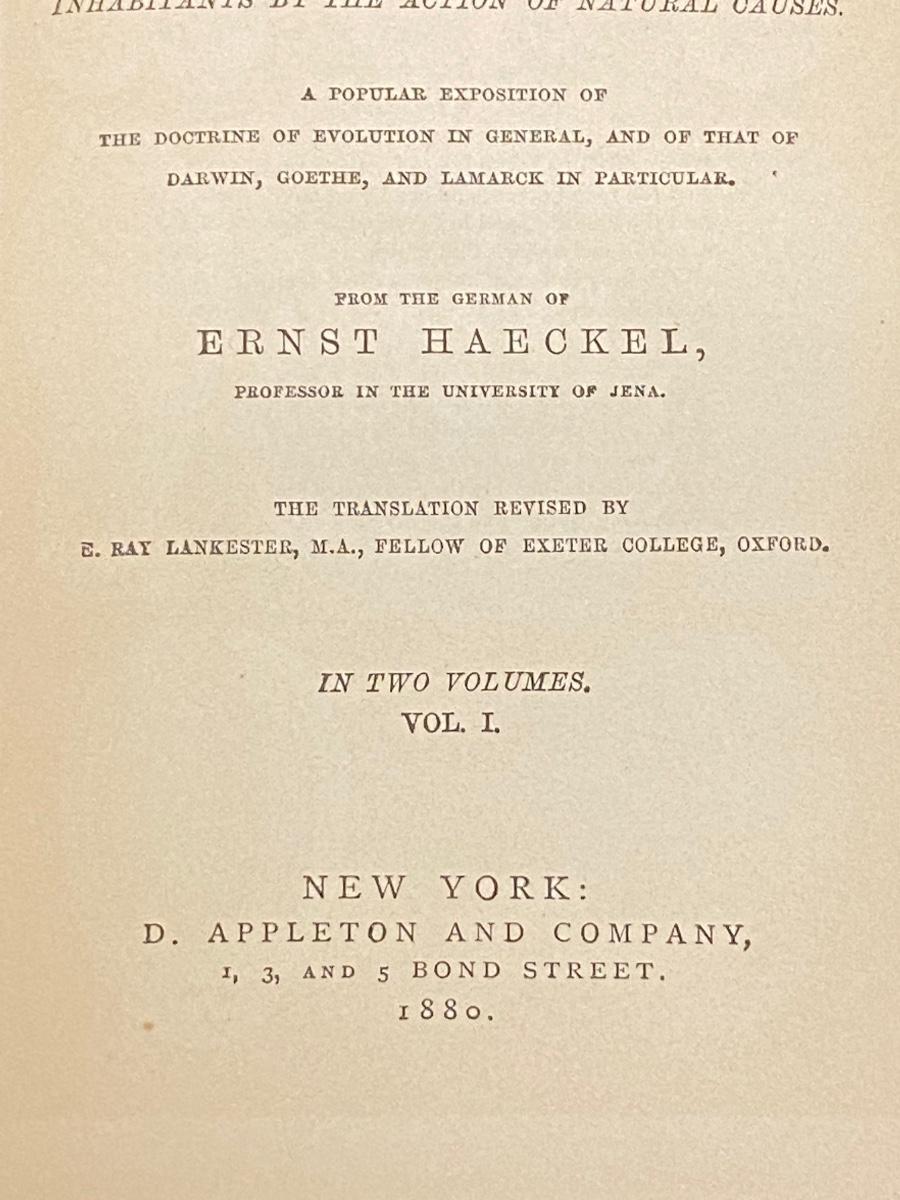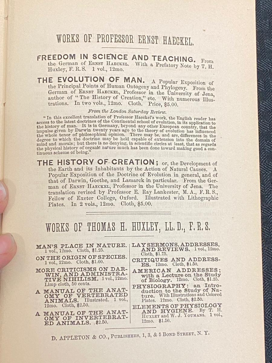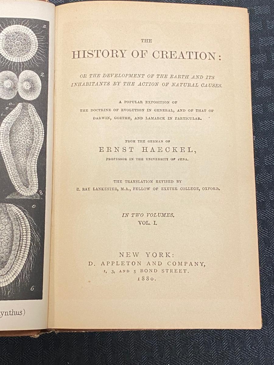 Antique 19th Century Anthropology Science Book The History of Creation by Ernst Haeckel Vol. 1