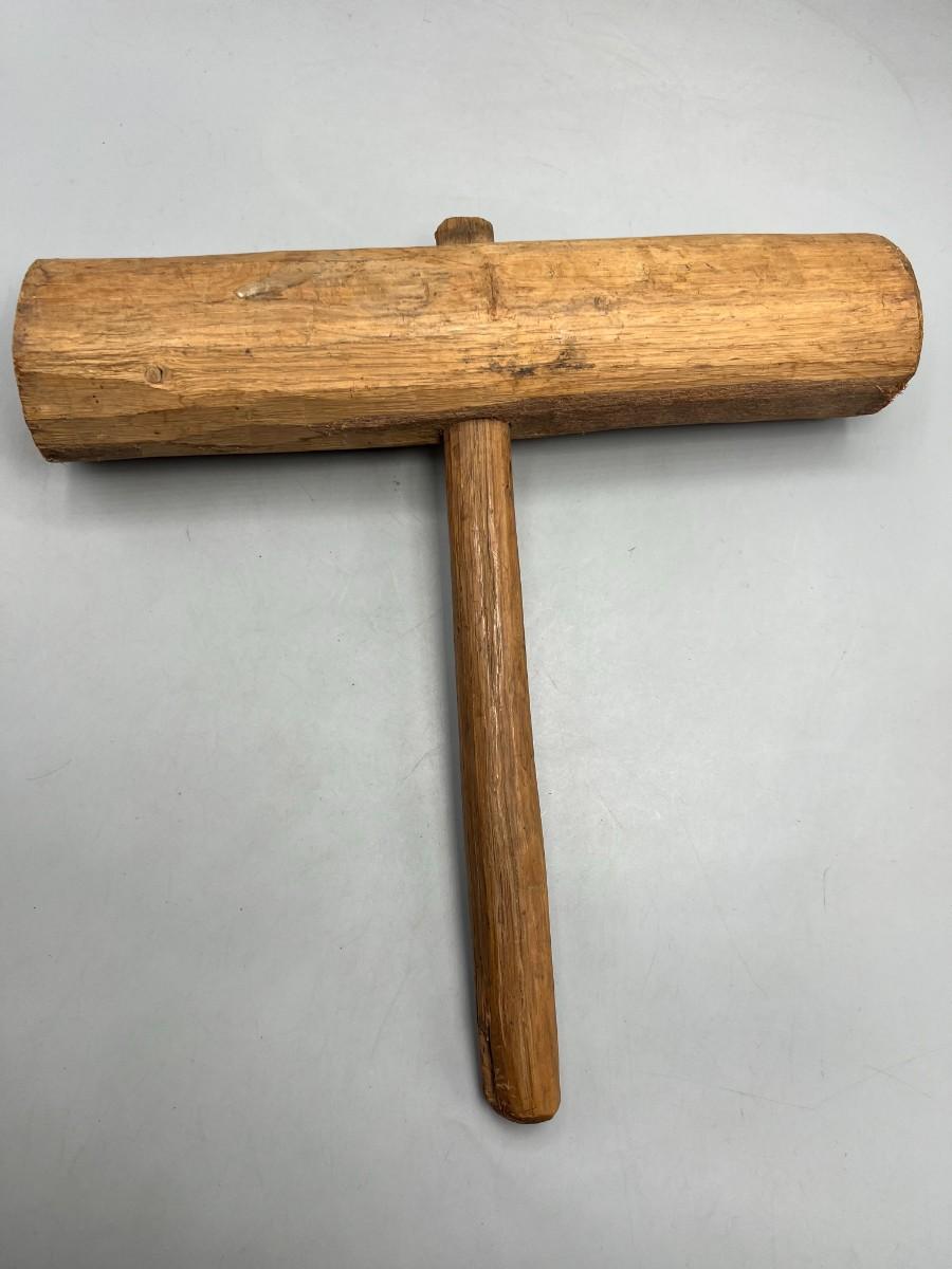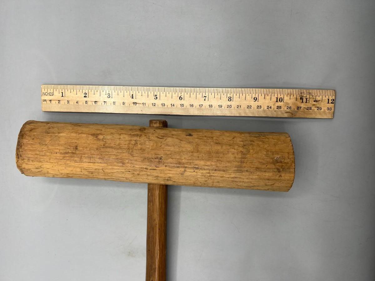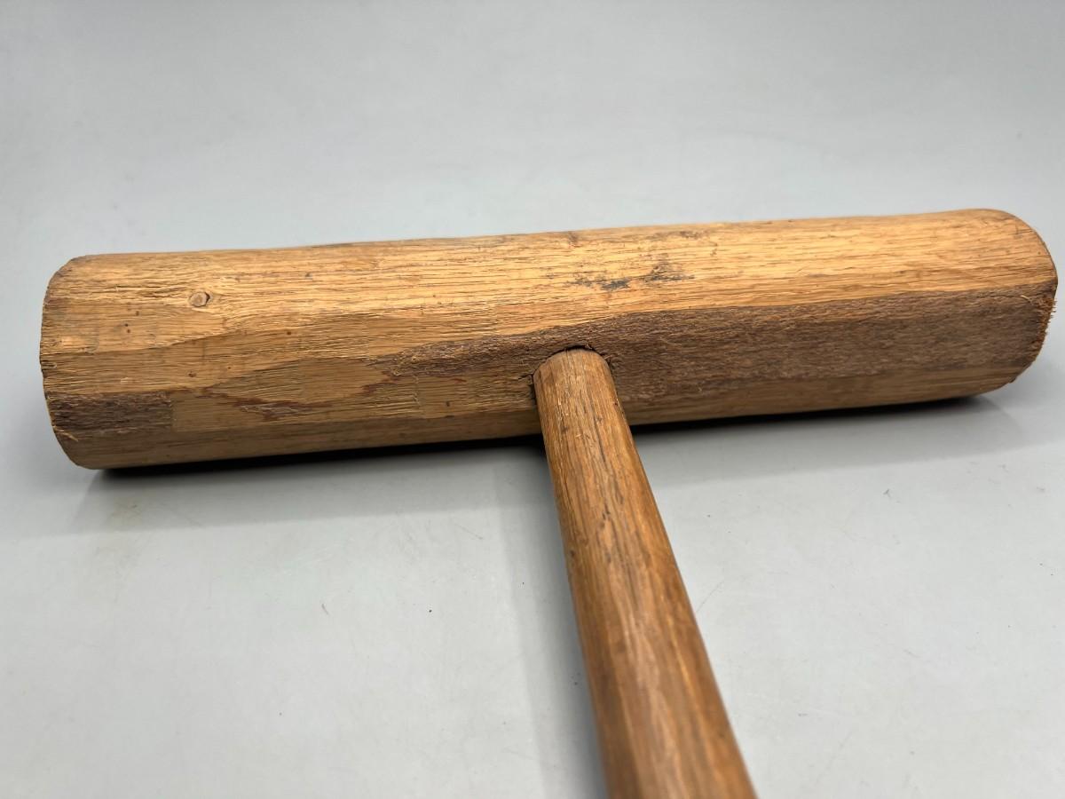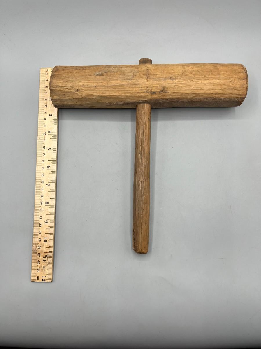 There is antique wear all over the mallet, but there is no significant damage and is in overall fair collectible condition. Check pictures for more details and for sizing.