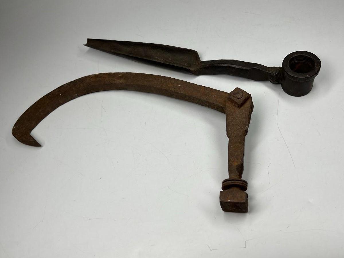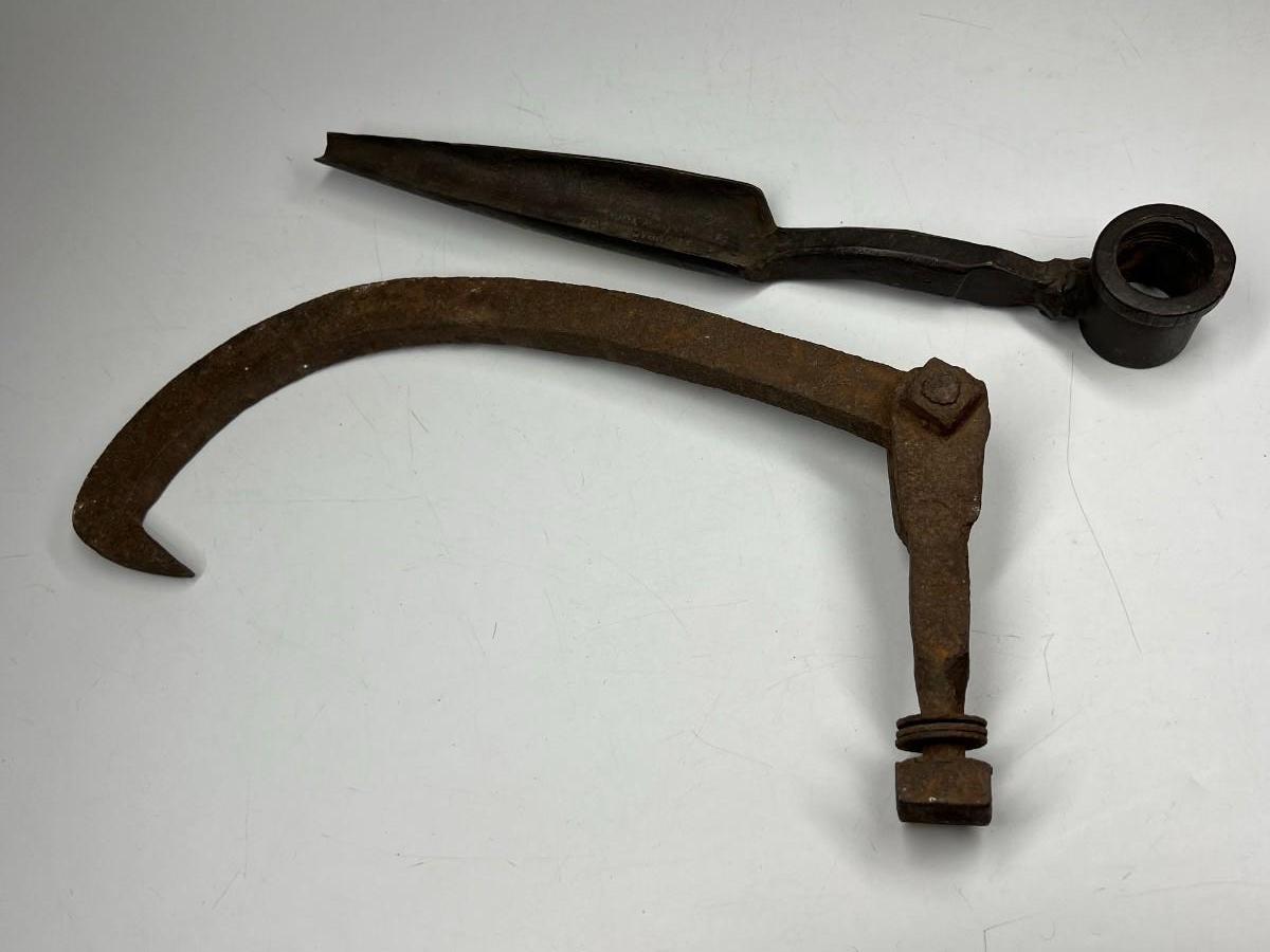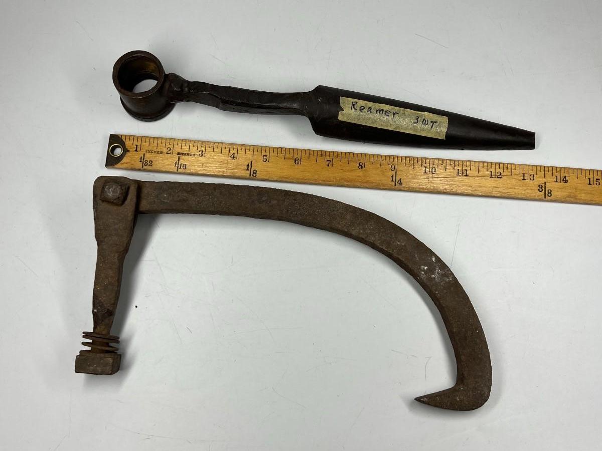 Antique 19th Century Reamer Wheelwright Tool & Curved Hooked Swivel Metal Hardware