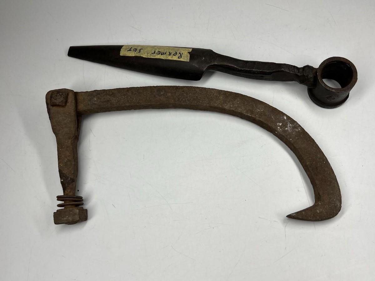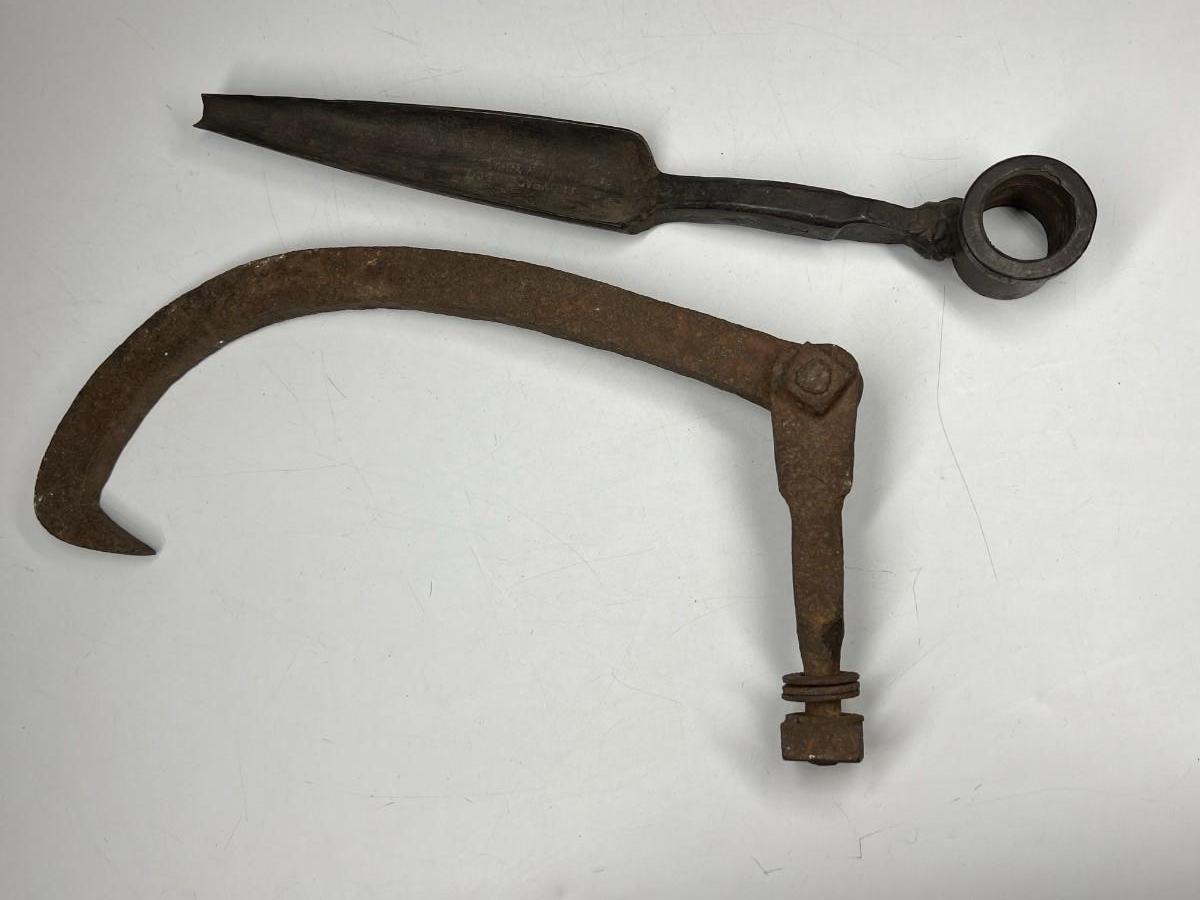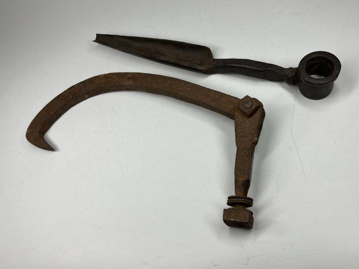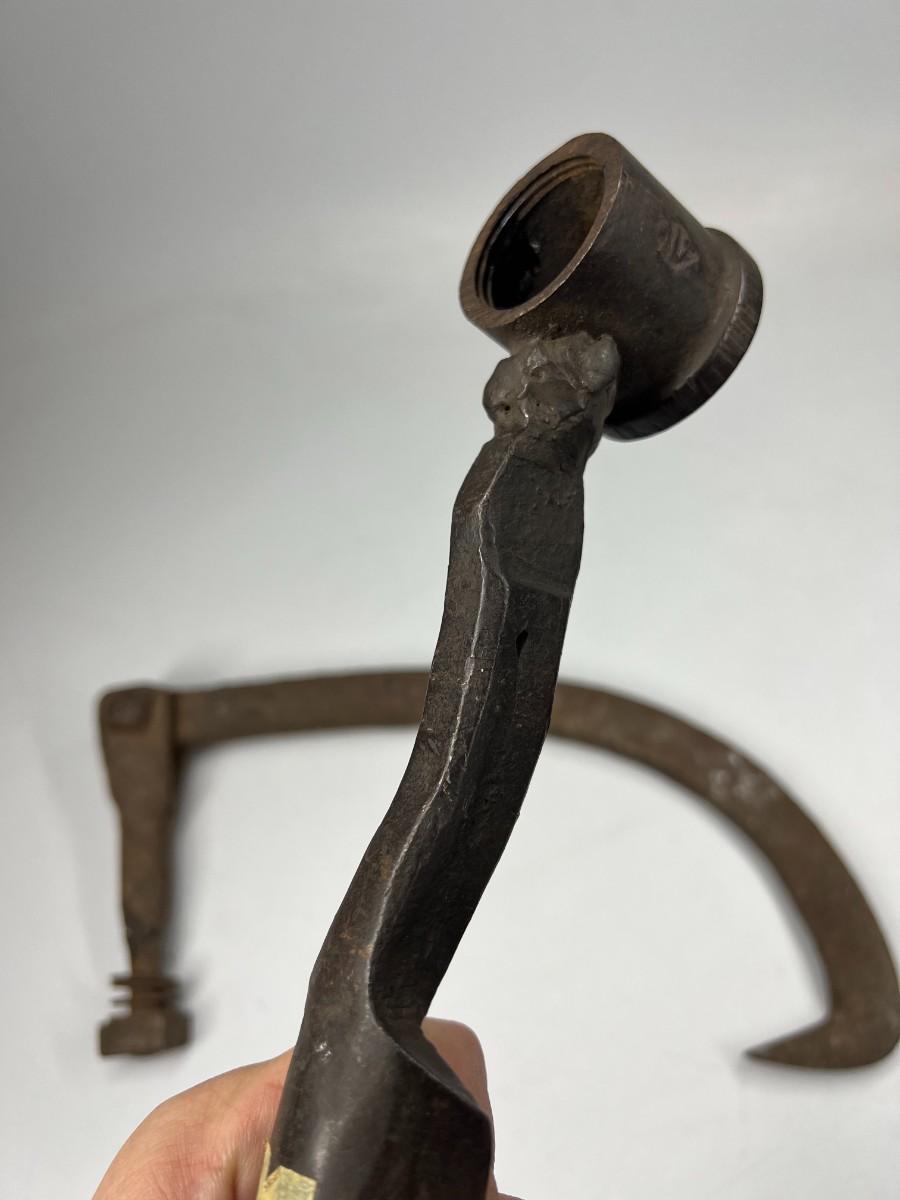 Antique 19th Century Reamer Wheelwright Tool & Curved Hooked Swivel Metal Hardware
