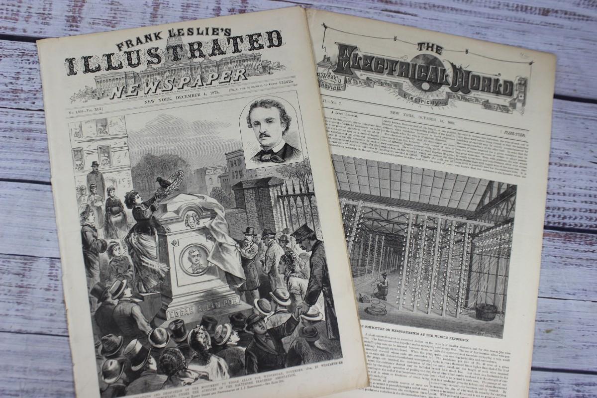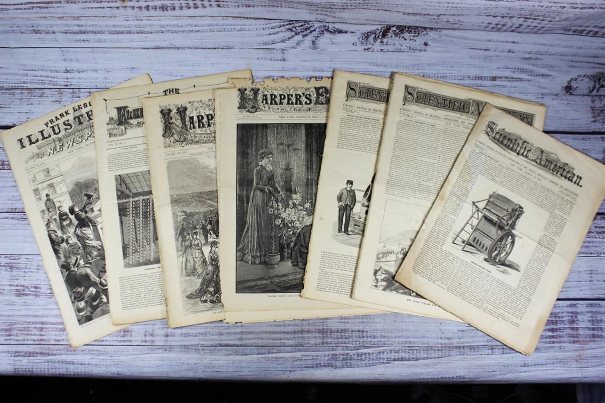 Antique 19th Century Scientific American, Harper's Bazar, Frank Leslie's Illustrated & More, there is some natural wear to the newspapers, but there is no significant damage and is in good condition for its age. Check picures for more details and for sizing.
