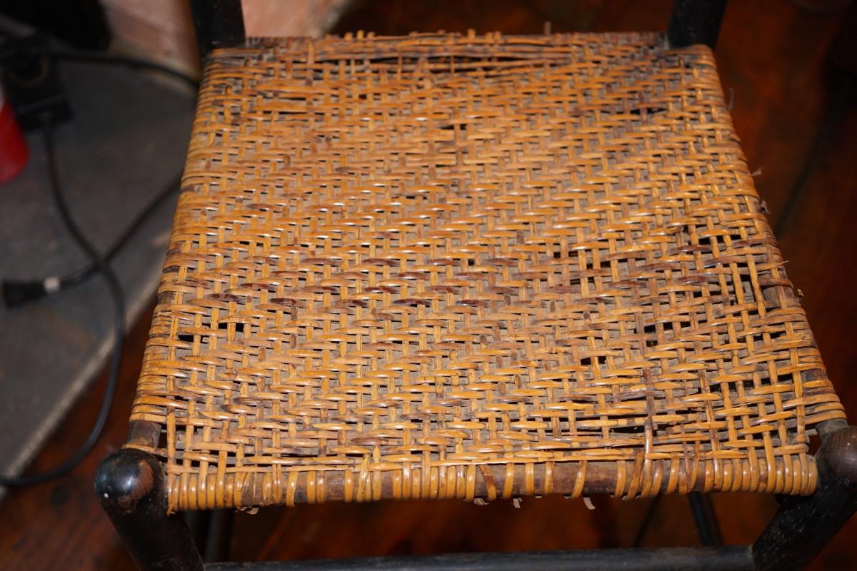 ANTIQUE 19TH CENTURY SIDE CHAIR WITH RATTAN SEAT