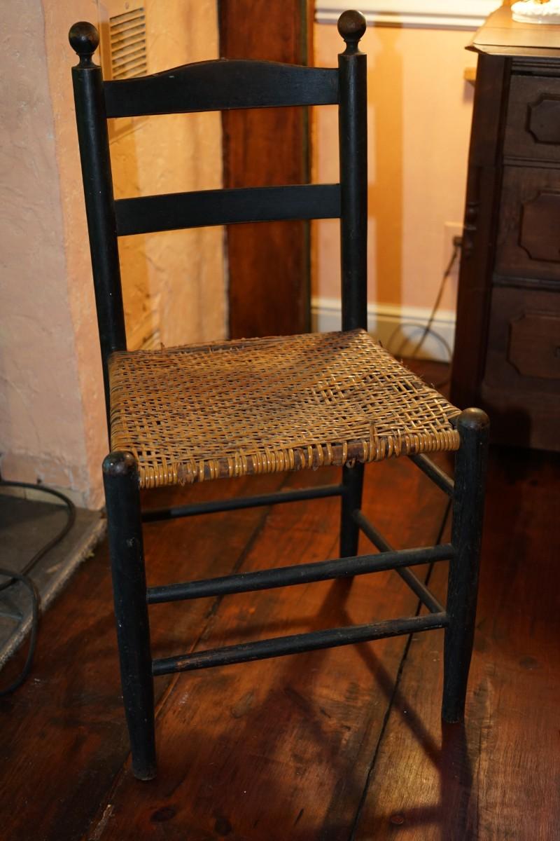 wood side chair that has been painted black - vintage paint.
