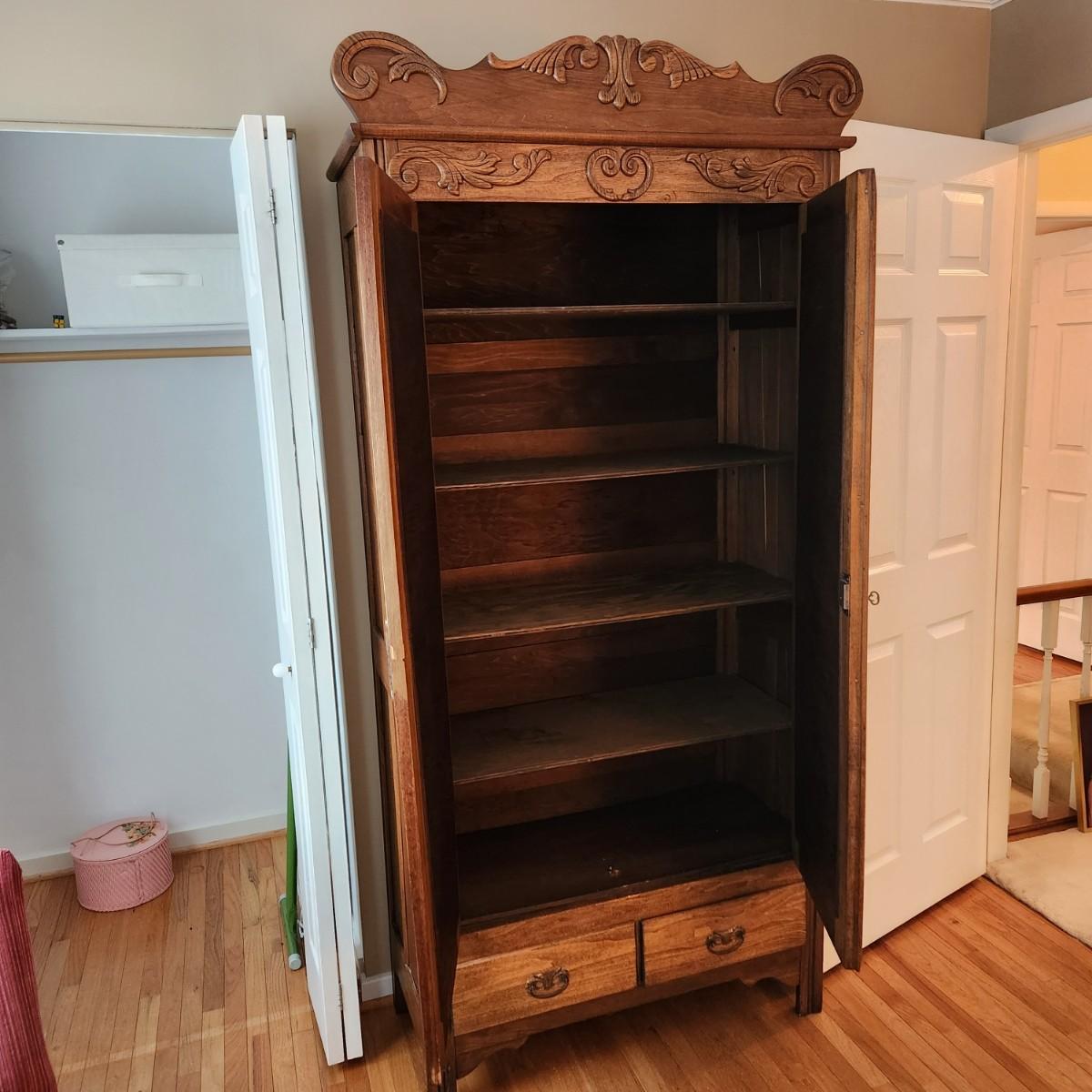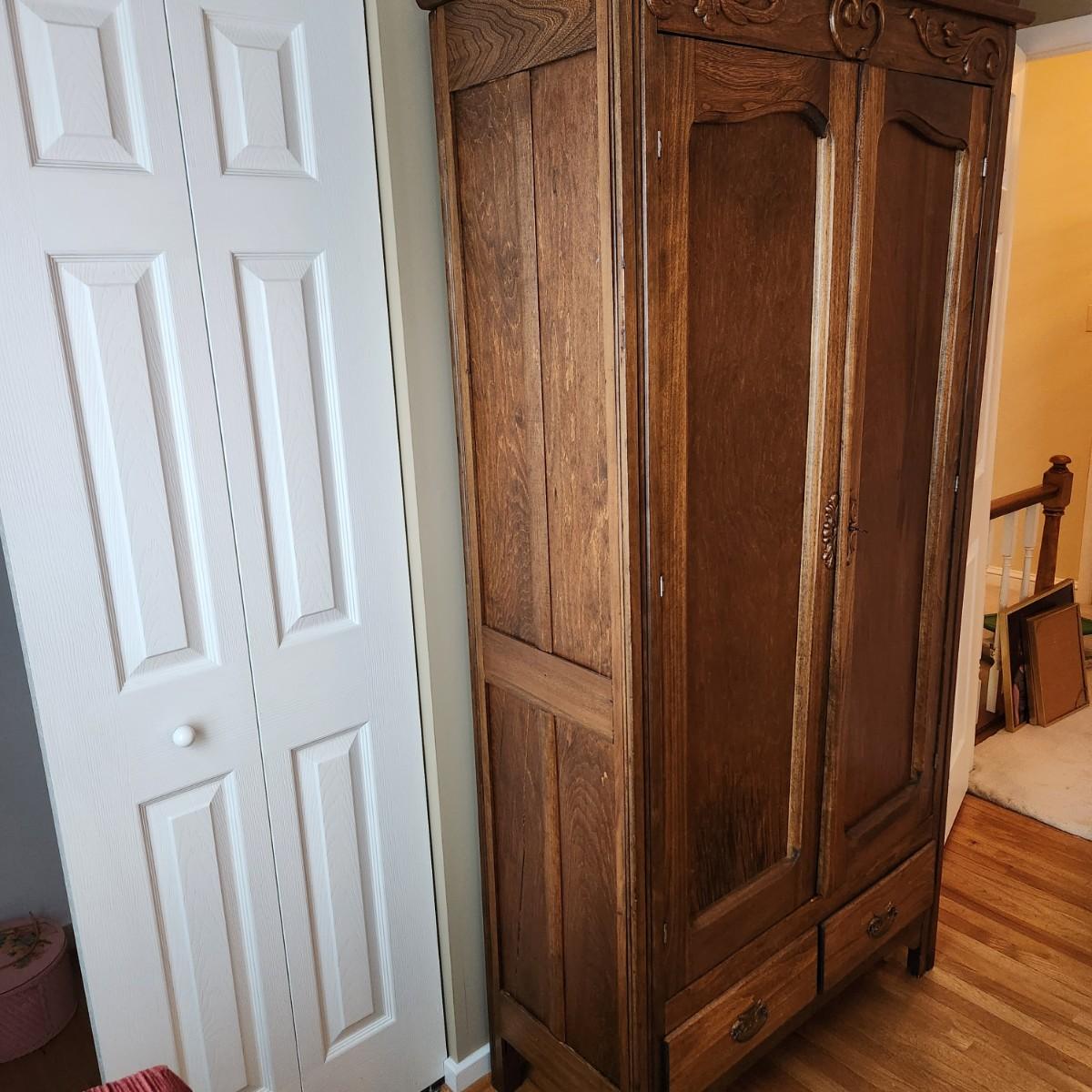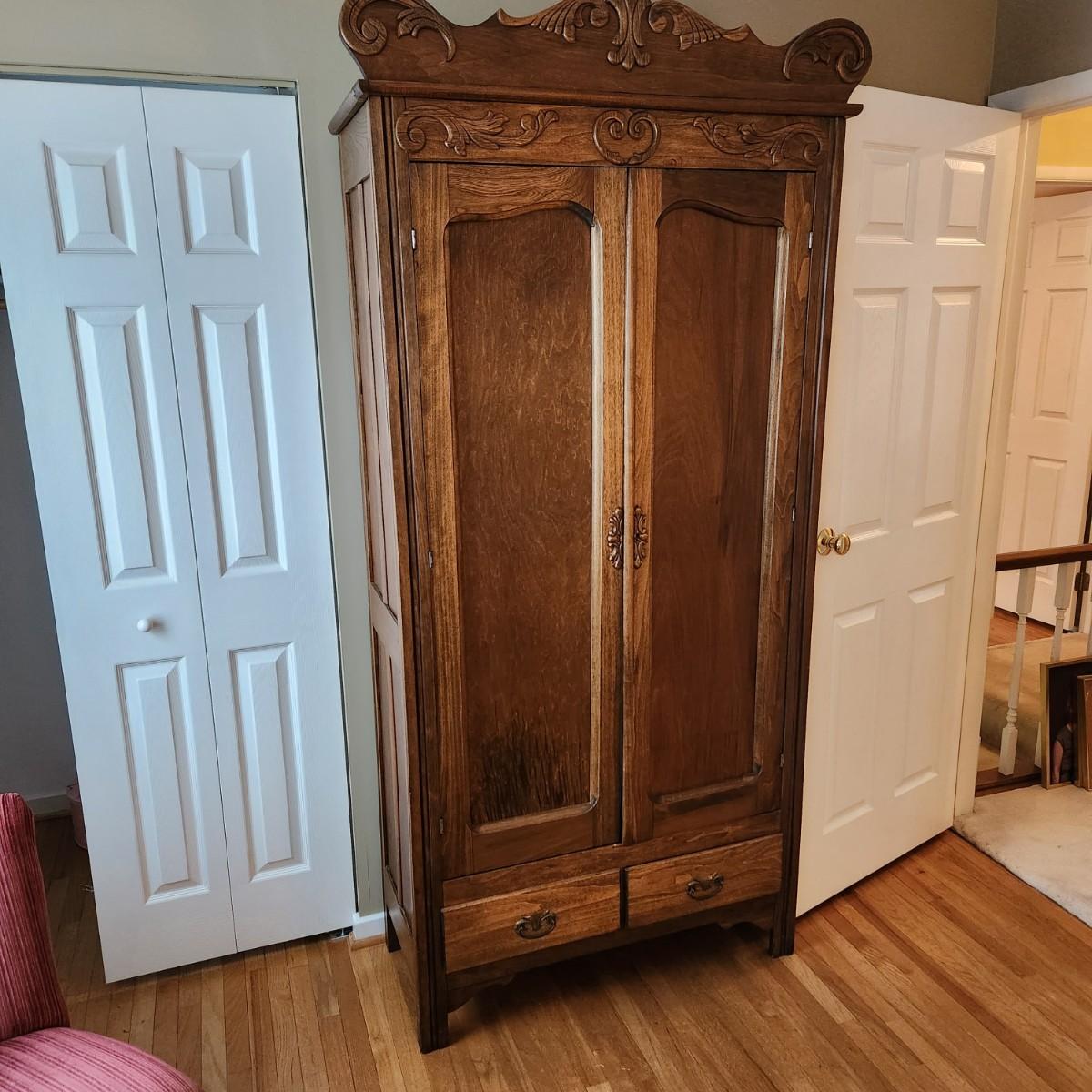 Antique 2 Door 2 drawer Armoire Cabinet w Key