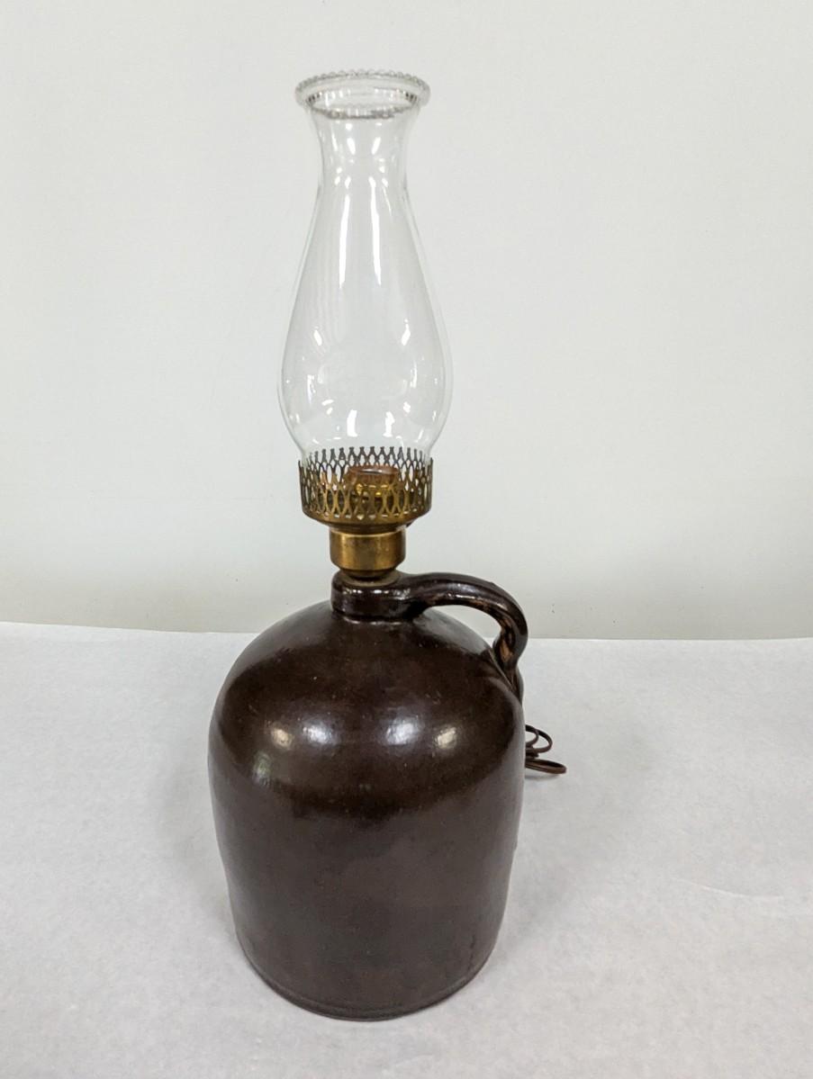 Antique 2 Gallon Beehive Whiskey Stoneware Jug Oil Lamp