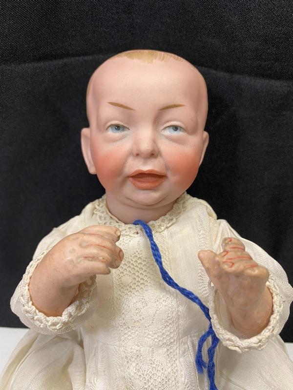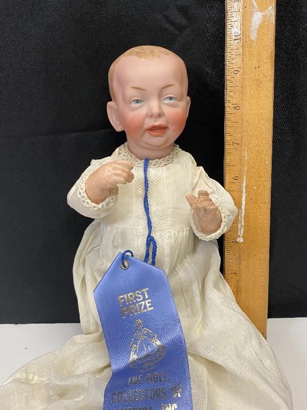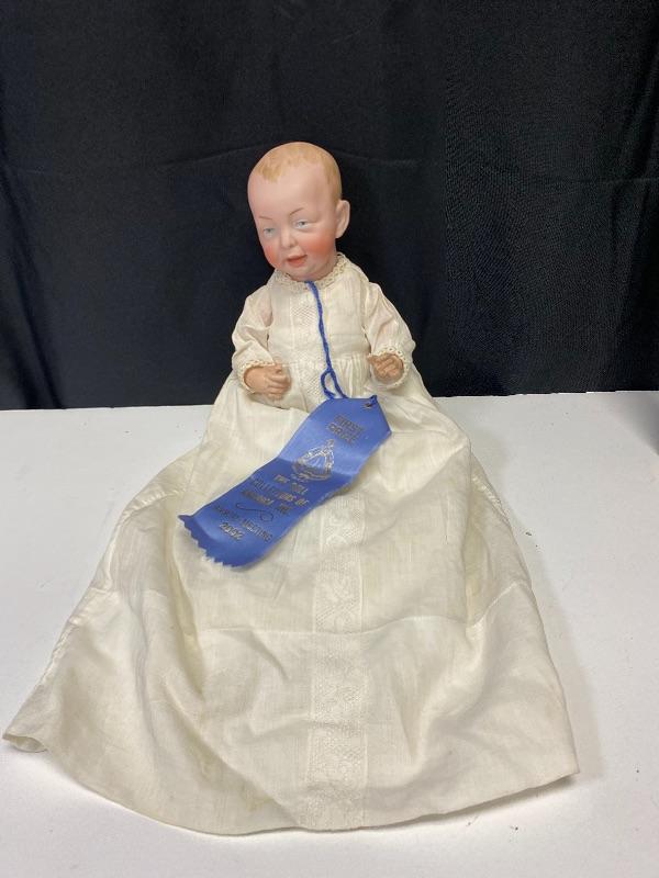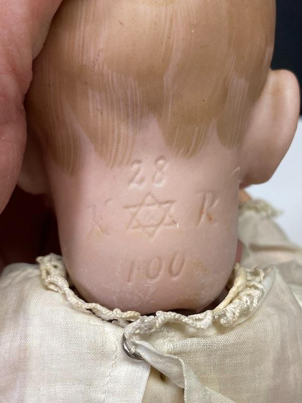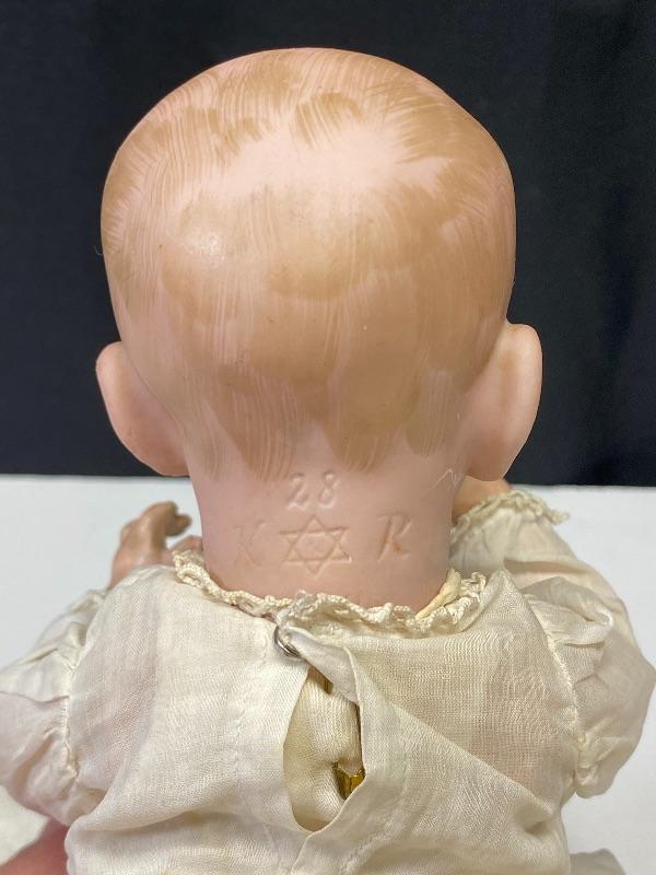 Antique Kammer & Reinhardt baby doll. Closed head with painted features, back of head reads 28 K⭐R 100. About 12" size. Composition body with a little wear and legs may have been repainted. Doll won blue ribbon first prize in 2002 Doll Collector's of America show. Note has doll from early 1900's.