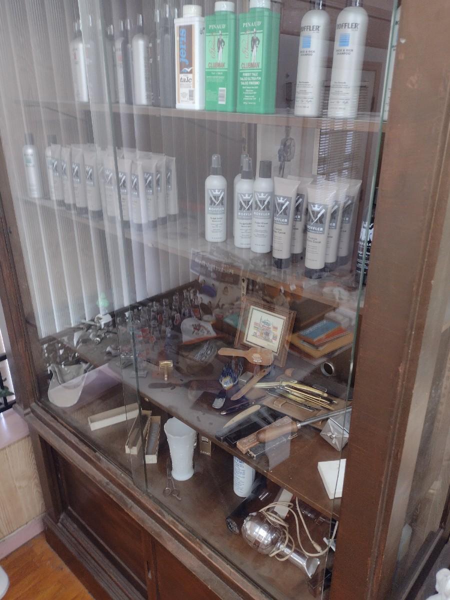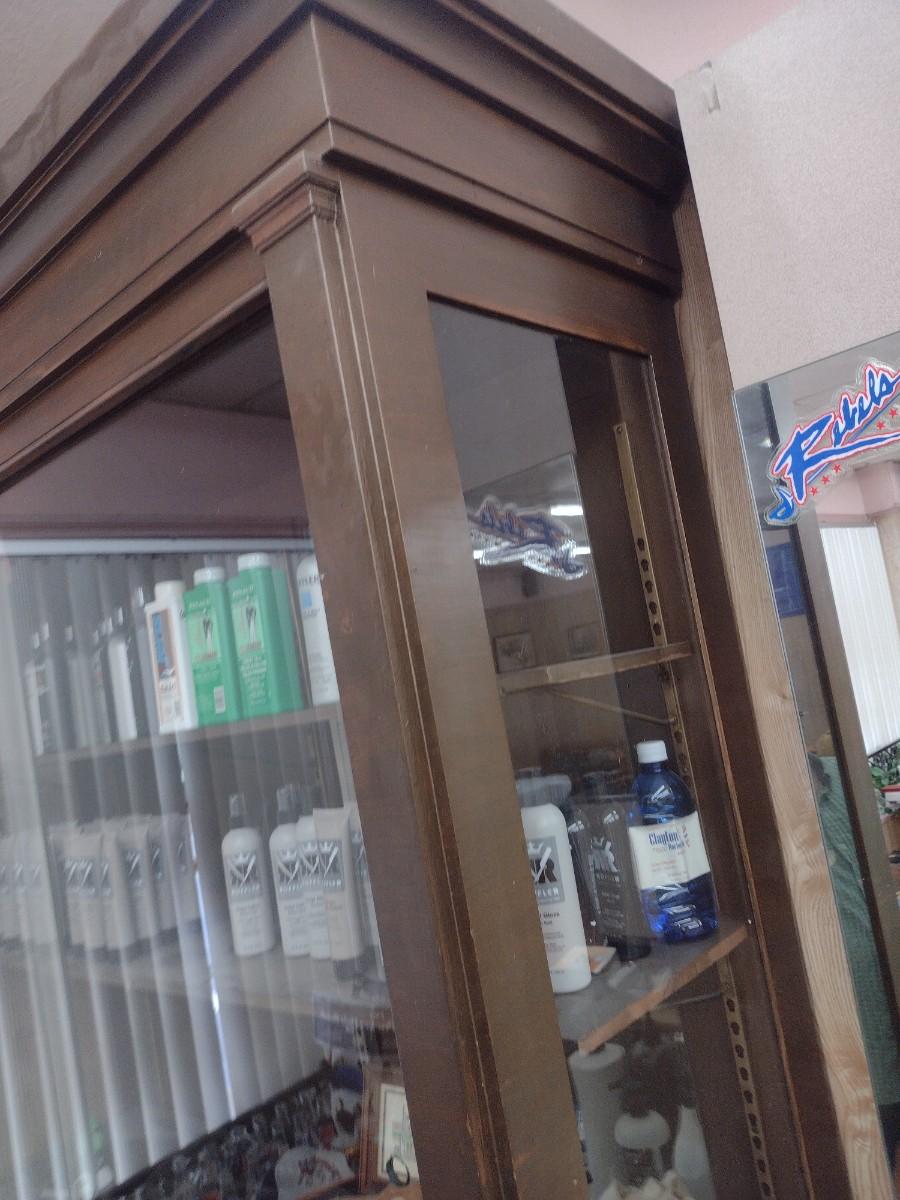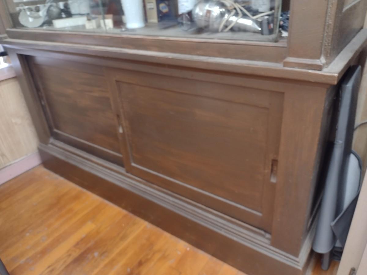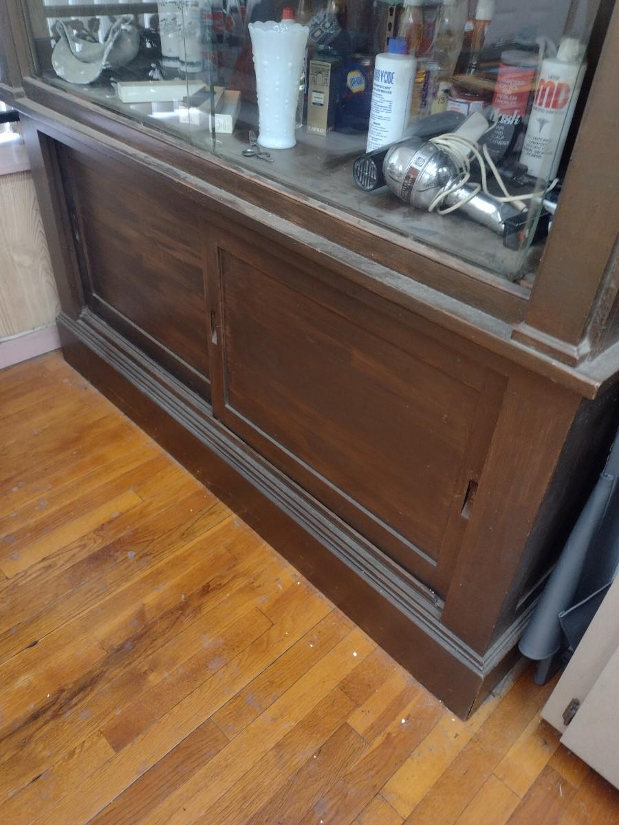 Antique 2-Piece Wood Framed Glass Display Front Apothecary Cabinet