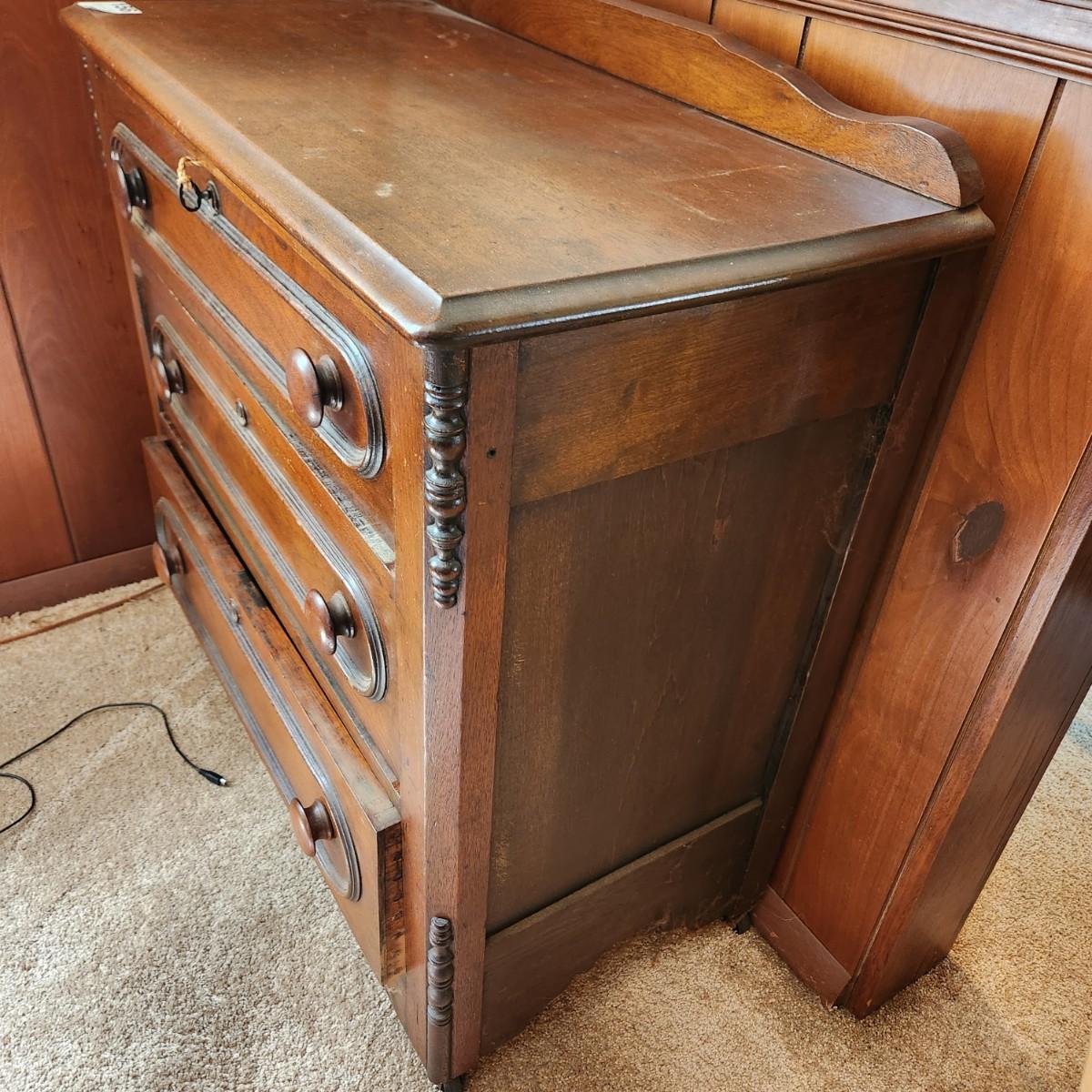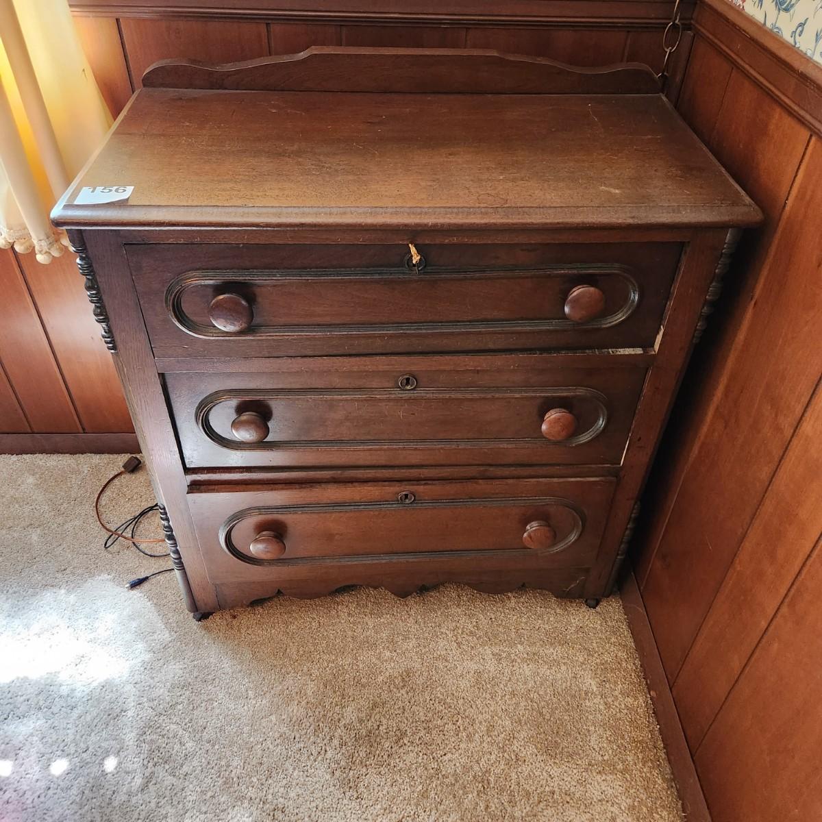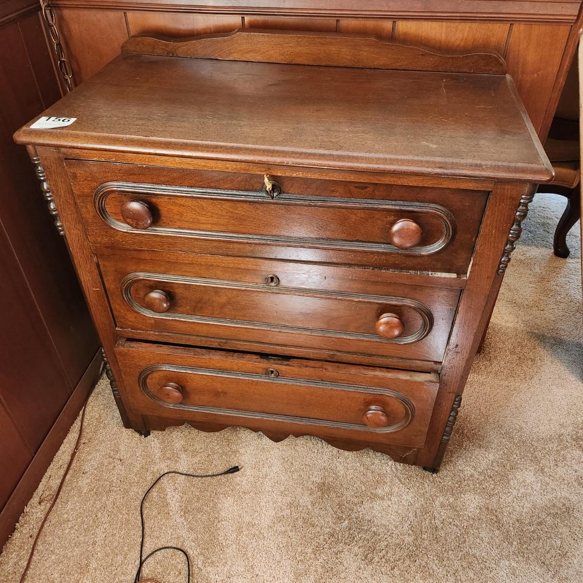 Antique 3 Drawer Cabinet Dresser with key on casters 29x15x30
