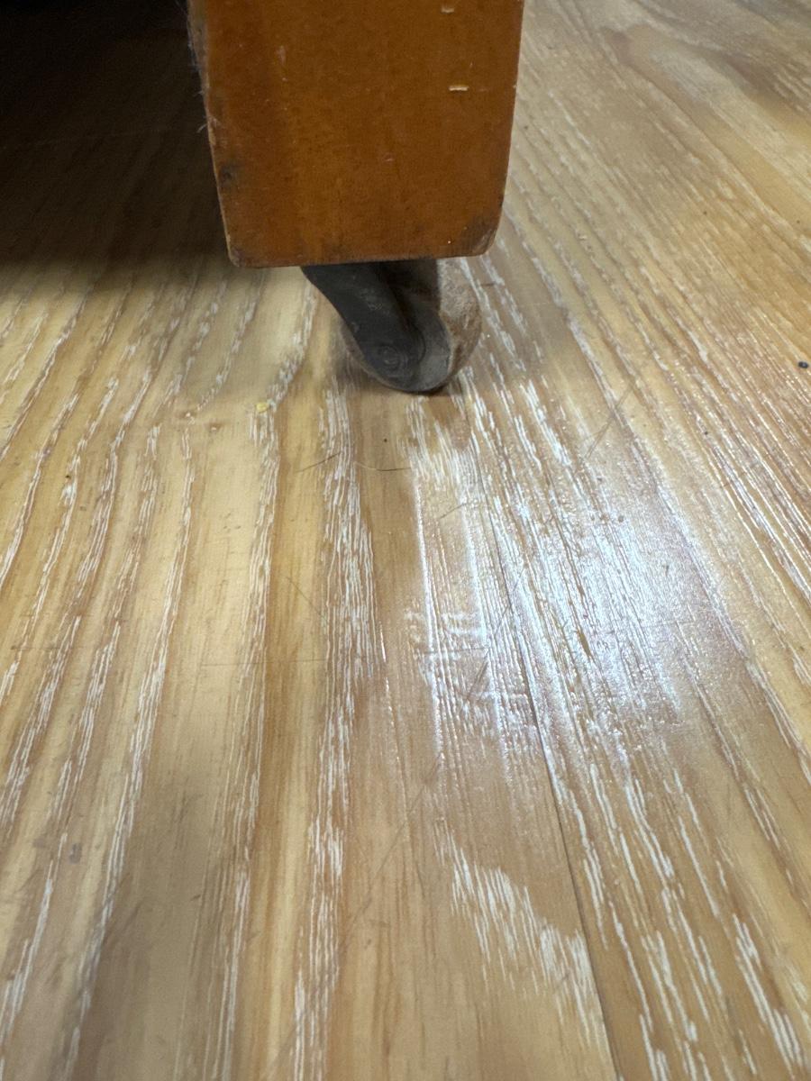 In great condition. Has wheels on the bottom. Some scratches as shown in pictures. Dimensions are 33 1/2 inches tall without the mirror and 72 inches tall with the mirror by 40 inches wide by 19 inches deep