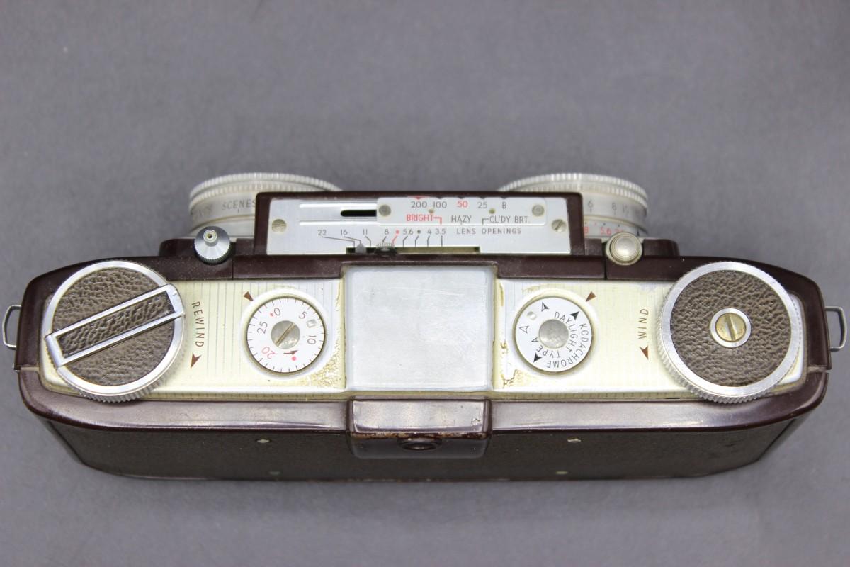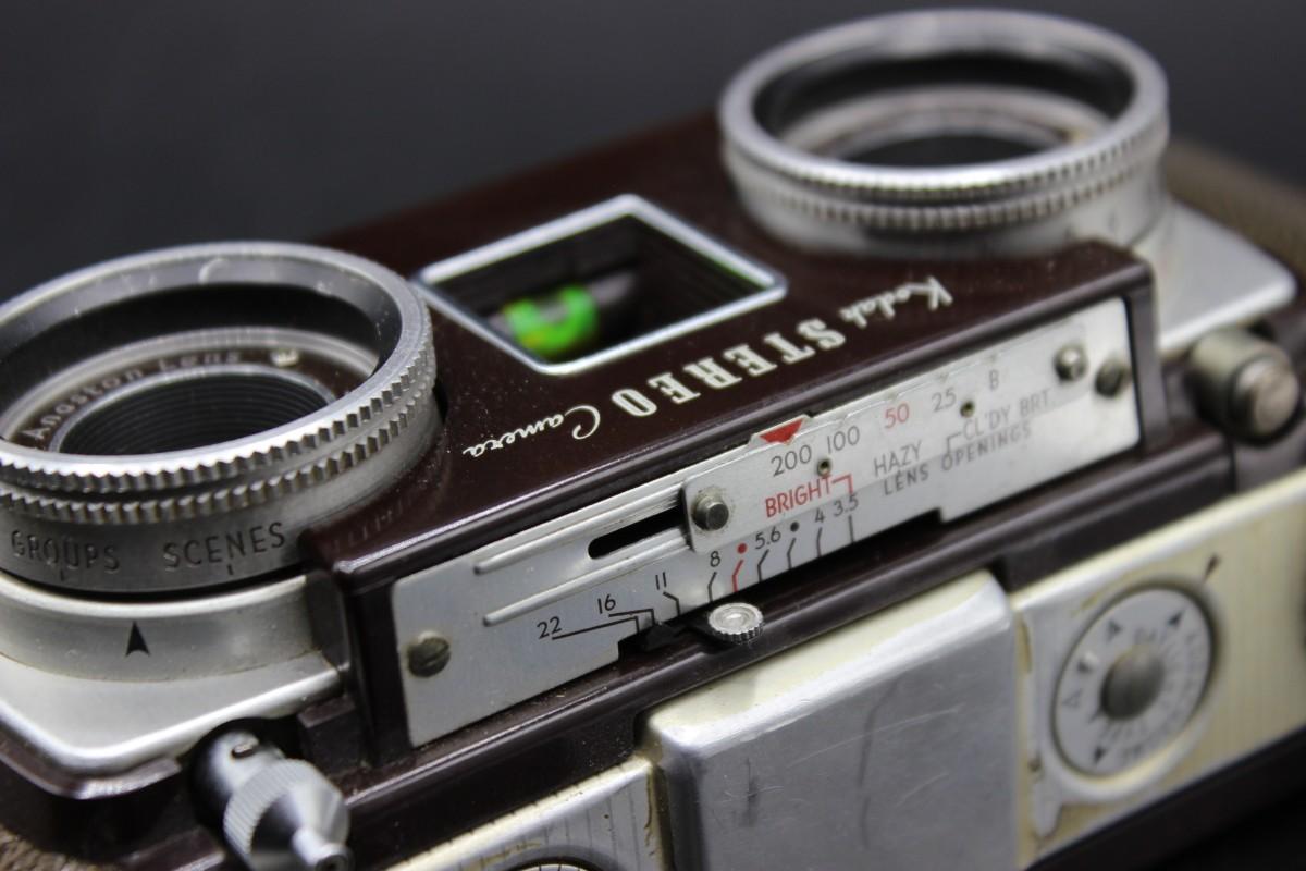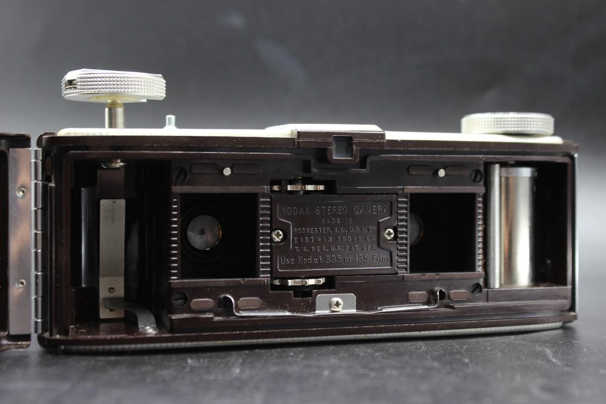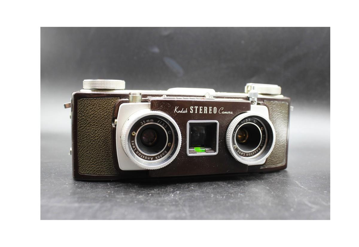 Antique 35mm Kodak Stereo Camera, there is no significant damage to the body of the camera and is in good condition. The level still functions and reads well, has not been tested with film. Check pictures for more details and for sizing.